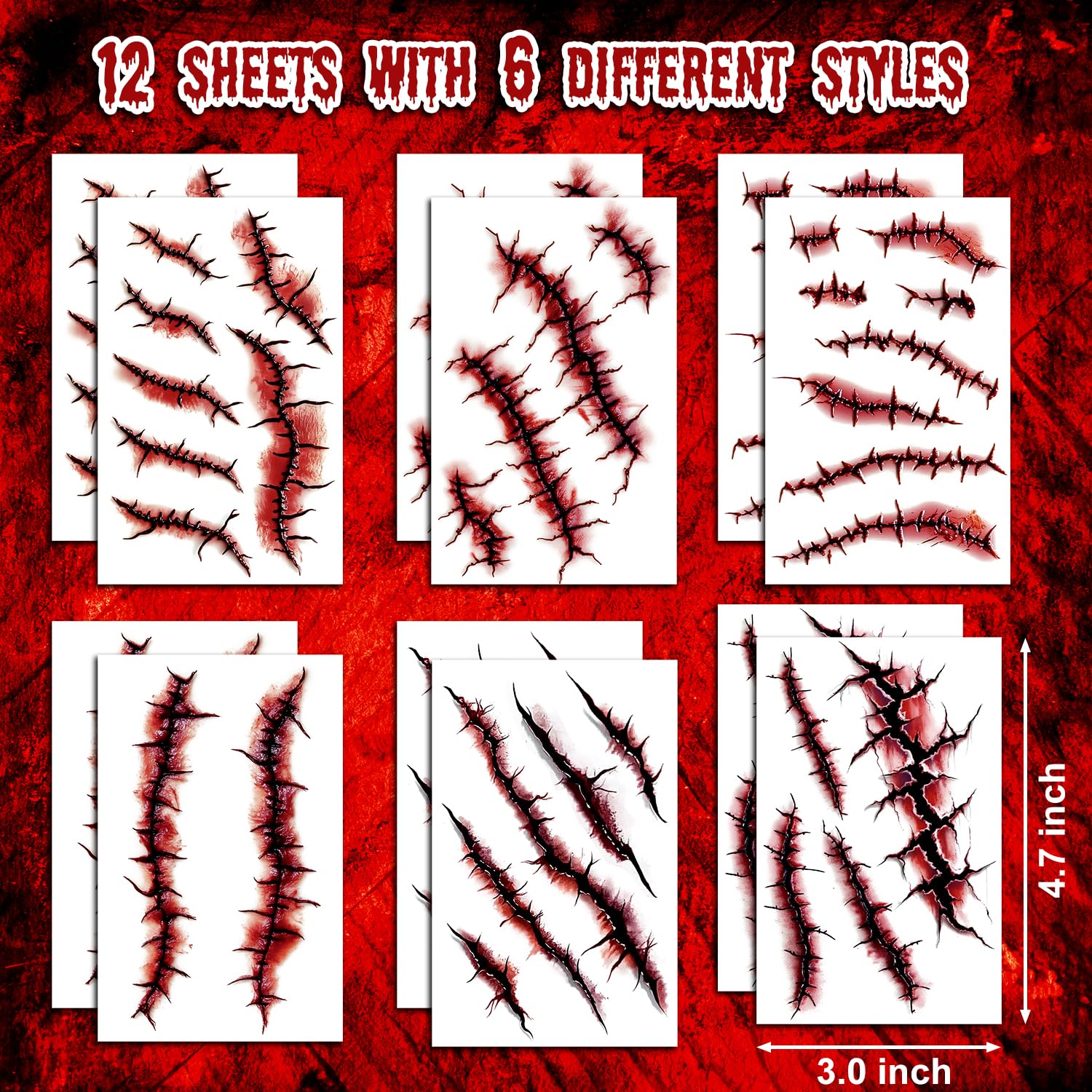 - Realistic Zombie Makeup: Halloween tattoos for kids adults look realistic, especially if you add simple makeup around them. You will get 12 sheets of horror realistic Halloween tattoos stickers, scar makeup for Halloween parties, cosplay parties, playing dress up, etc