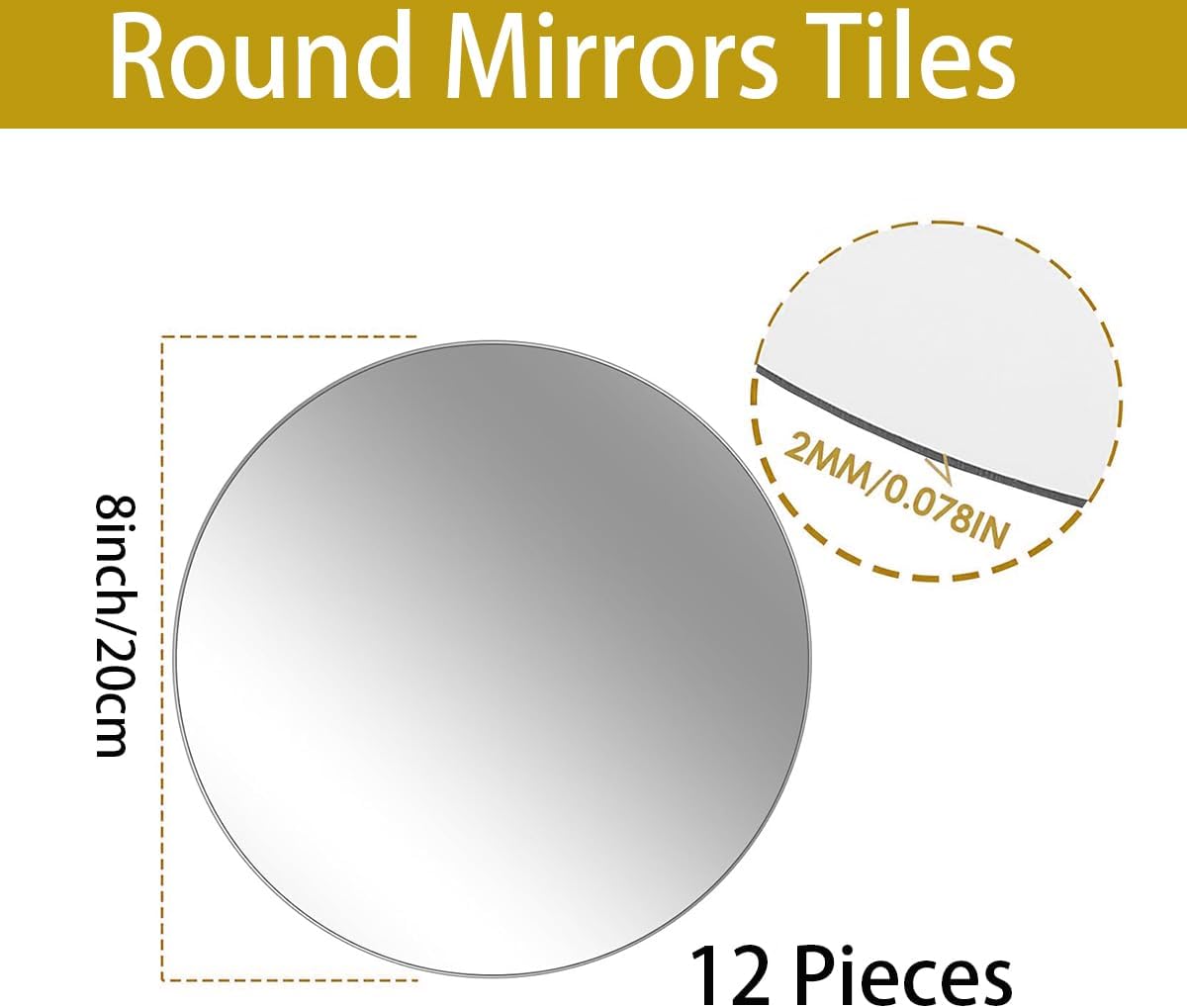 - Round Acrylic Small Mirror Set: Set of 12 round mirror plates mirrors for centerpieces, each is 8 inches in diameter and 2mm thick. High-definition mirror reflection for a great display of holiday cheer.