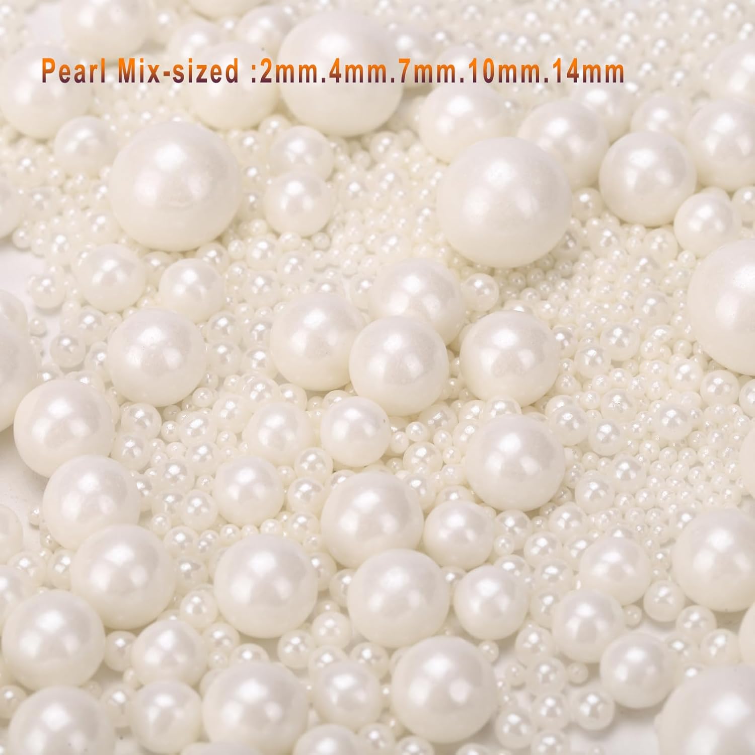QuirkTech Pearl Sprinkles Mix-sized, 1.1Lb/500g White Edible Pearls for Cake Decorating, Ice Cream Topping Cupcake Toppers Cookie Wedding Shower Party
