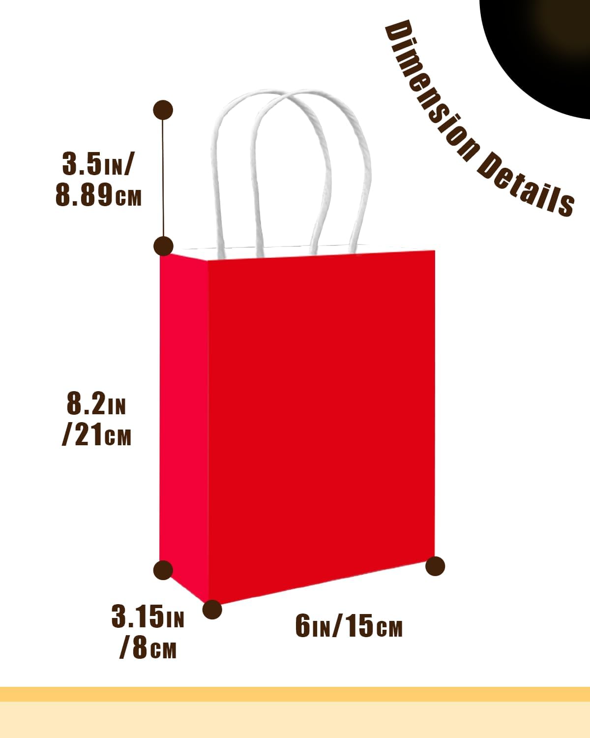 qiqee 50-Packs Gift Bag with Handles Bulk Red Paper Bags Multiple Uses (8.3"x3"x6" Small Size)
