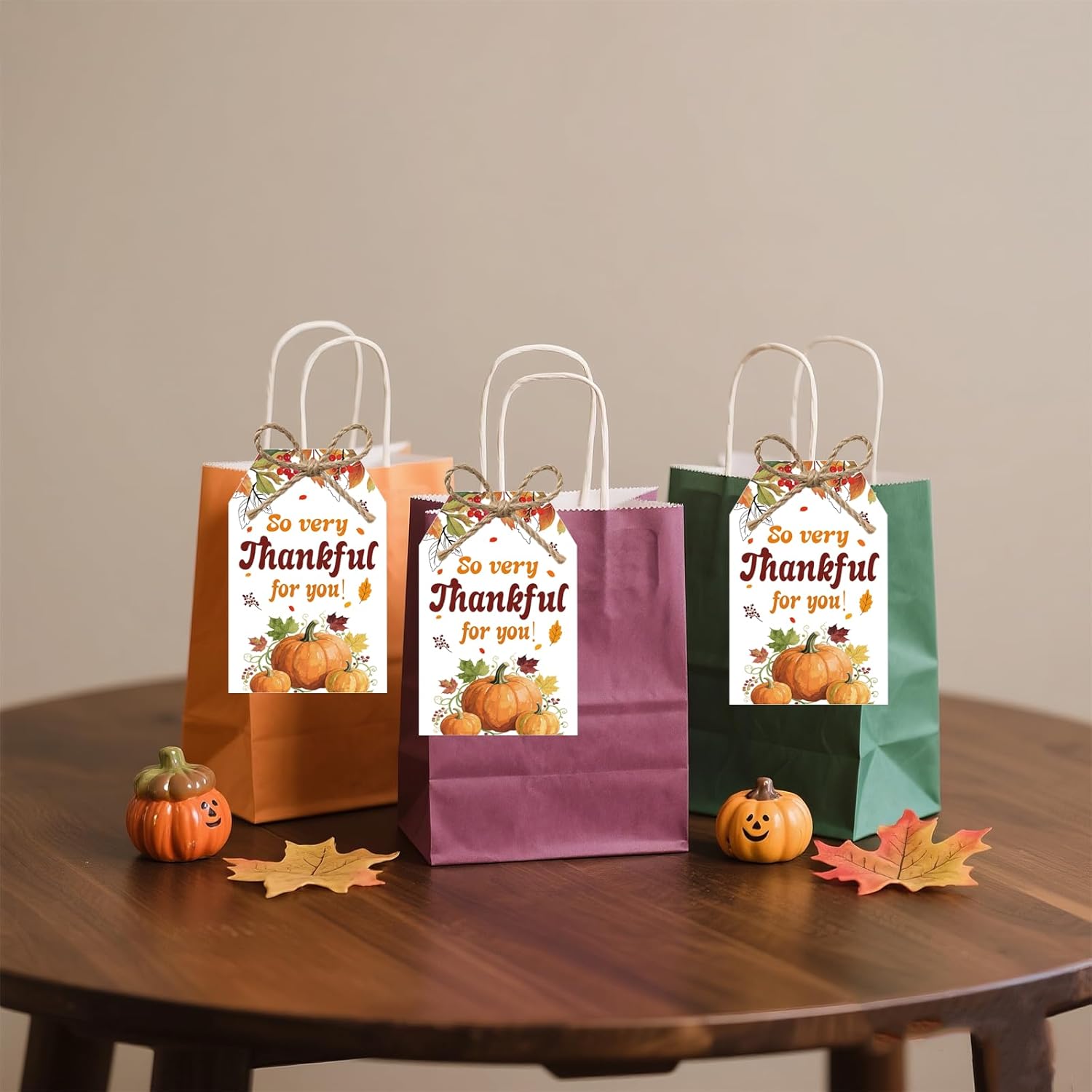 - [Design & Print]Vibrant autumnal graphics featuring triple pumpkins, maple leaves, and berries with heartfelt "So Very Thankful For You" messages. Ourthanksgiving gift tags radiate festive charm, while the rustic fall Leaf tags for gift bagselevate your seasonal presentations.