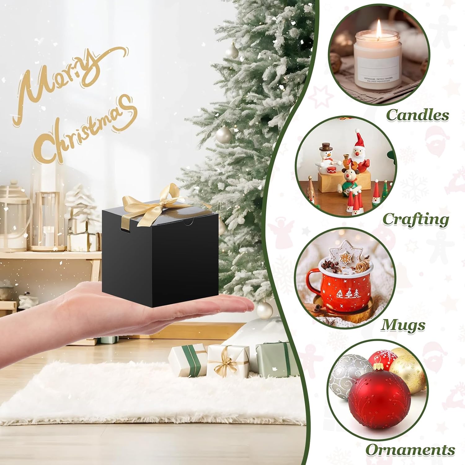 DOYIDE 60 Pcs Small Gift Boxes, 3x3x3 inches Kraft Paper Gift Box with Ribbons, Black Candy Boxes for Christmas Wedding Favors Baby Shower Bridal Shower Birthday Party