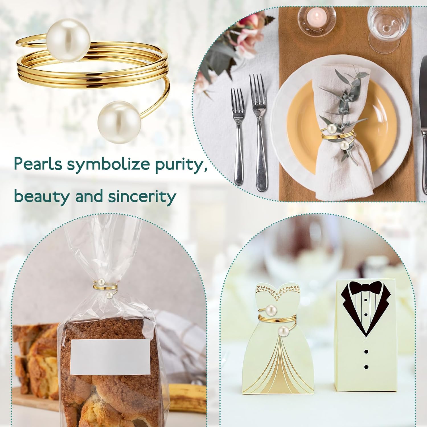 - 【Stunning Design】Transform ordinary meals into extraordinary events with these pearl-adorned napkin rings. The combination of gleaming gold metal and lustrous pearls creates a visually striking contrast that elevates any table setting. Perfect for impressing guests at weddings, anniversaries, or holiday dinners.