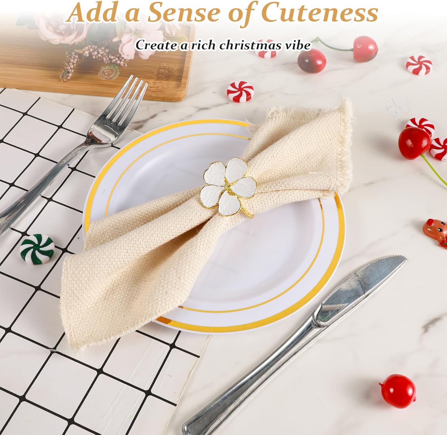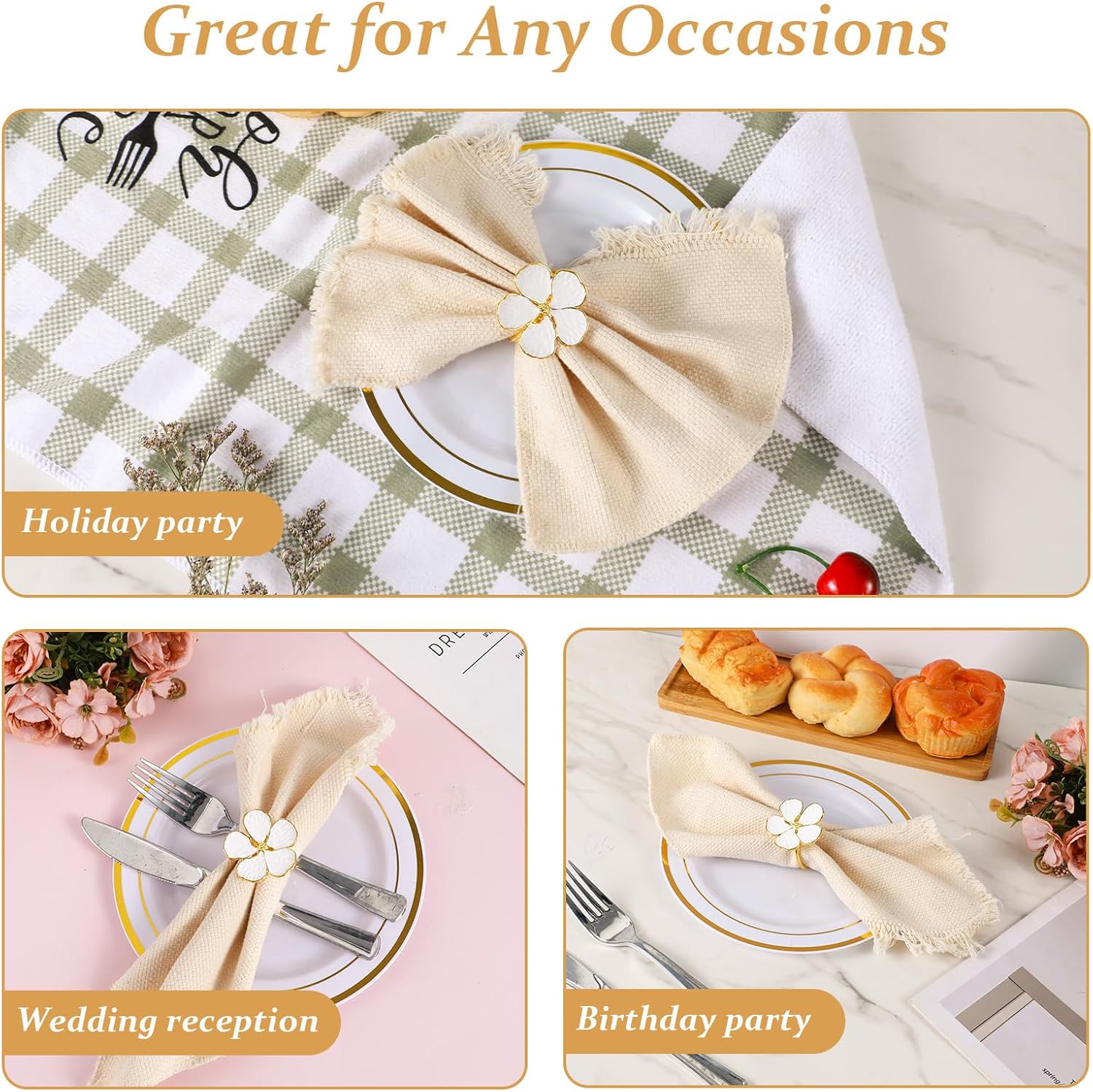 - 【Complete Ring Set】Includes 10 matching white floral napkin rings (1.6x1.65inch each). Bulk quantity suits large tables while compact size stores efficiently in drawers. Suitable for gifting, catering, or multi-season home decor rotation