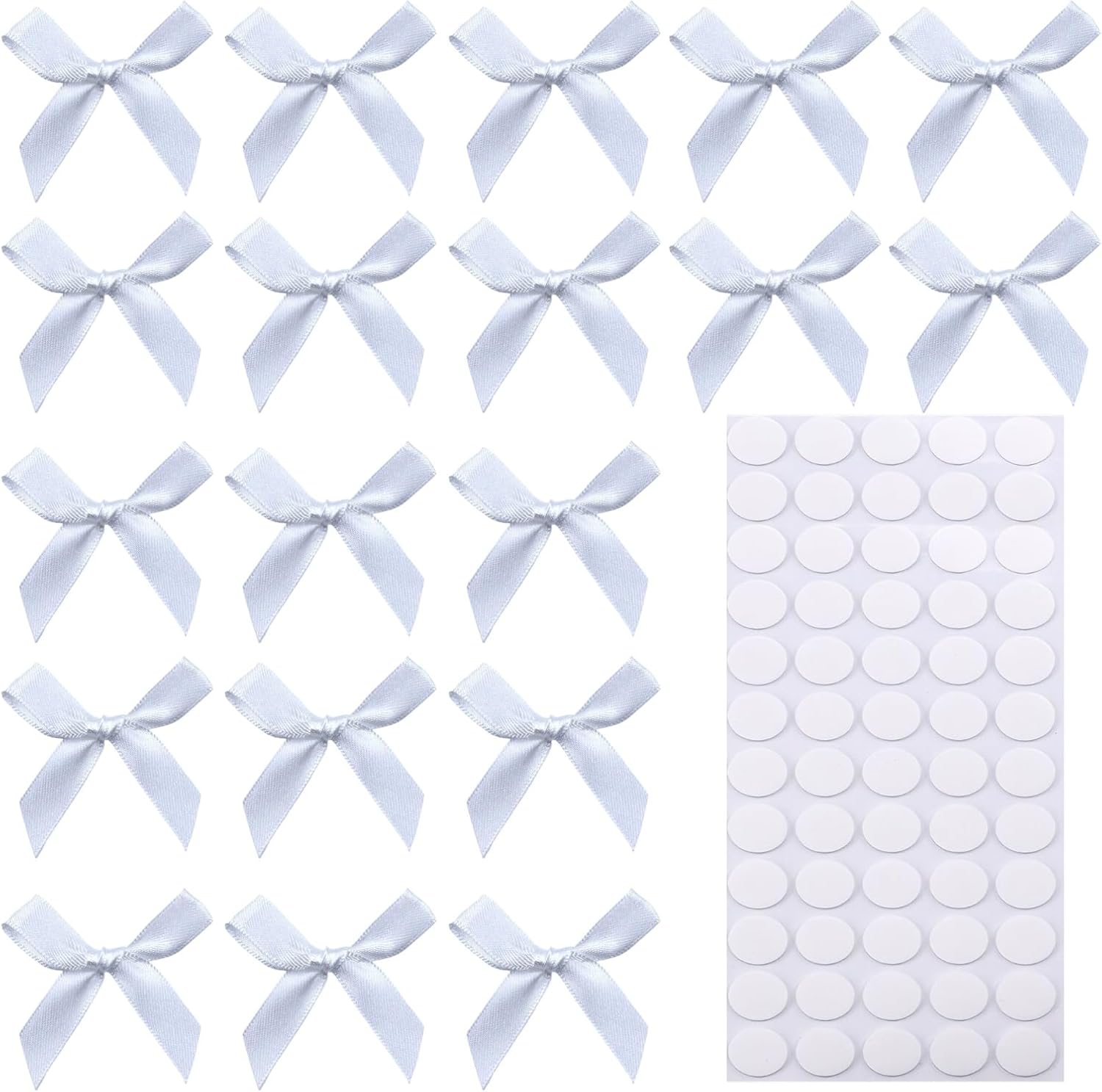 60pcs 1.7" White Mini Ribbon Bows Decor – Small DIY Satin Bows for Crafts, Little Bows for Gift Wrapping, Tiny Bow Stickers for Note Card Bow Baby Shower Cake and Candle Decorations