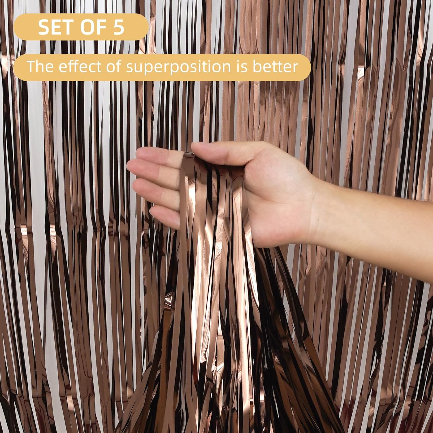 - {Perfect Size}: Set of 5, each pack curtain size is 3.2ft x 8.2ft (1m x 2.5m). The foil curtain is 8 feet long, the perfect length size covers a wide area, and can cover the entire area that needs to be modified. Which is great to use for indoor or outdoor perfect decoration to create a perfect decorative backdrop.