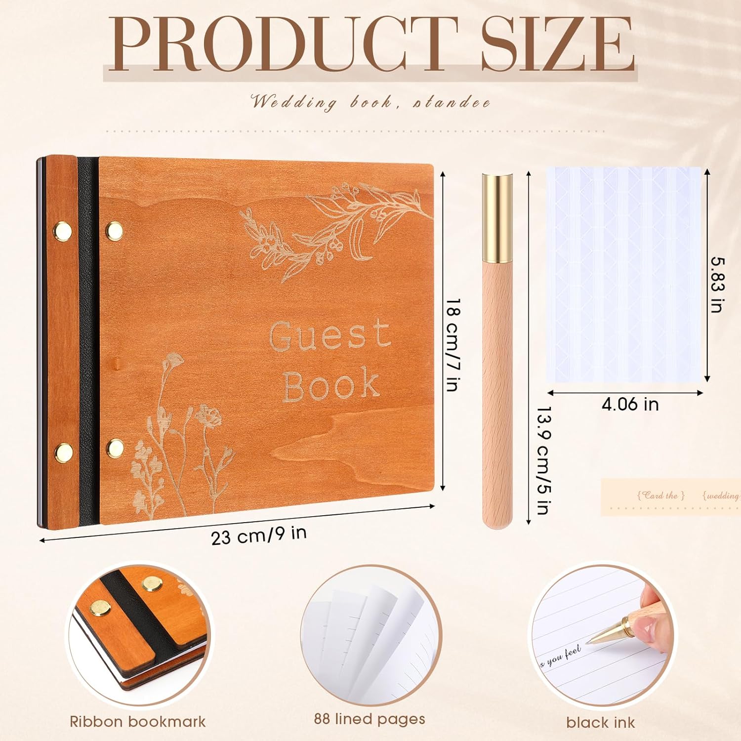 - Practical and Thoughtful: each wedding guest sign in book has a wooden front cover, a silk ribbon bookmark, 88 lined pages, and durable sewn binding, ensuring ample writing space and long-lasting use; Complete with photo corner stickers, it secures snapshots alongside heartfelt messages from your guests
