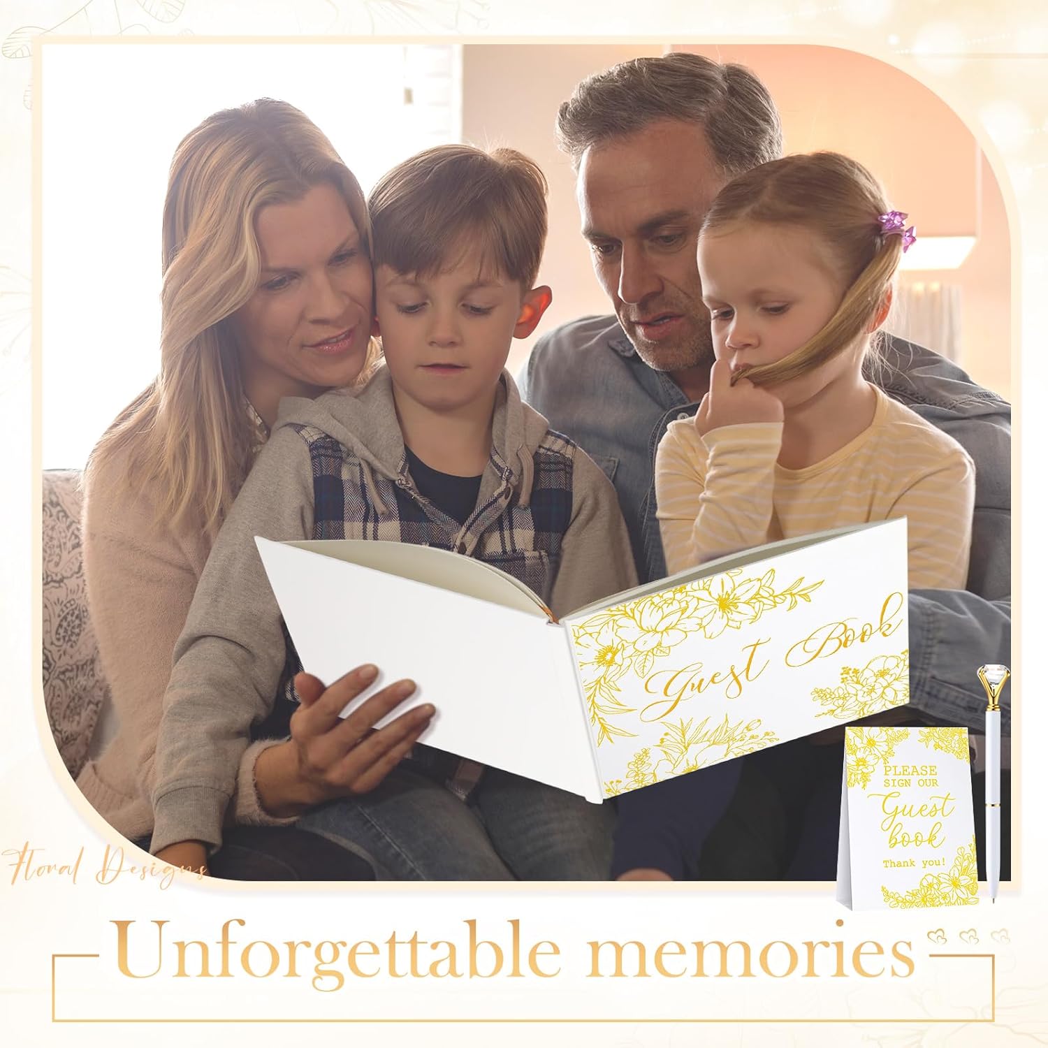 - Elegant Craftsmanship: embrace timeless elegance with wedding sign book, beautifully adorned with gold foil flowers and texts, charming and serve as both a treasured keepsake and tabletop decor within your home for years to come; It displays the warm wishes and memories shared by your guests while also decorating your places