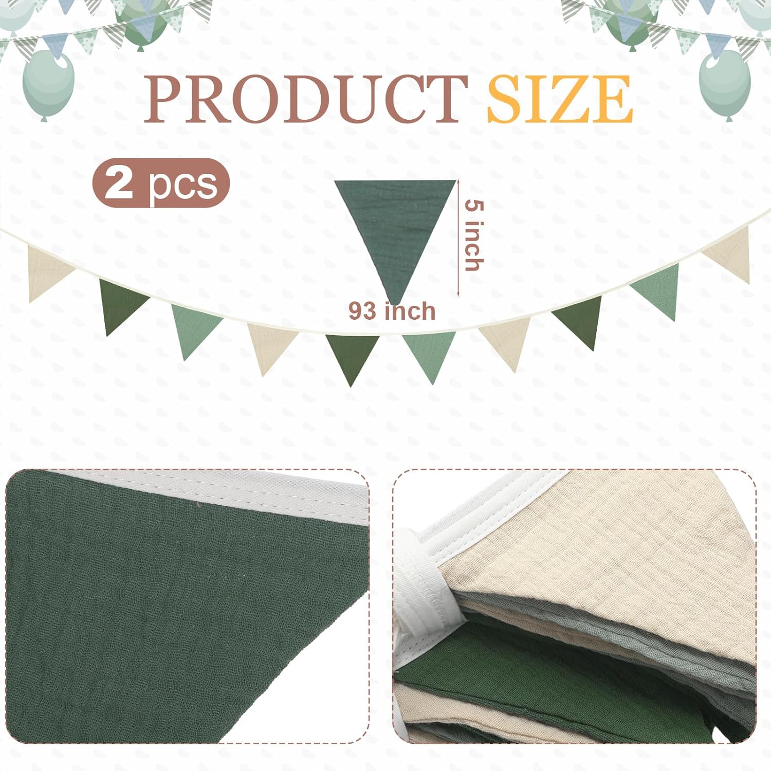 Oudain 15.5 ft Pennant Banner Flags, 2 Pcs Nursery Garland Triangle Bunting Flag Baby Banner for Nursery Decor Baby Birthday Boho Wedding Shower Party Event, Each 7.75 ft (Fresh Natural Color)