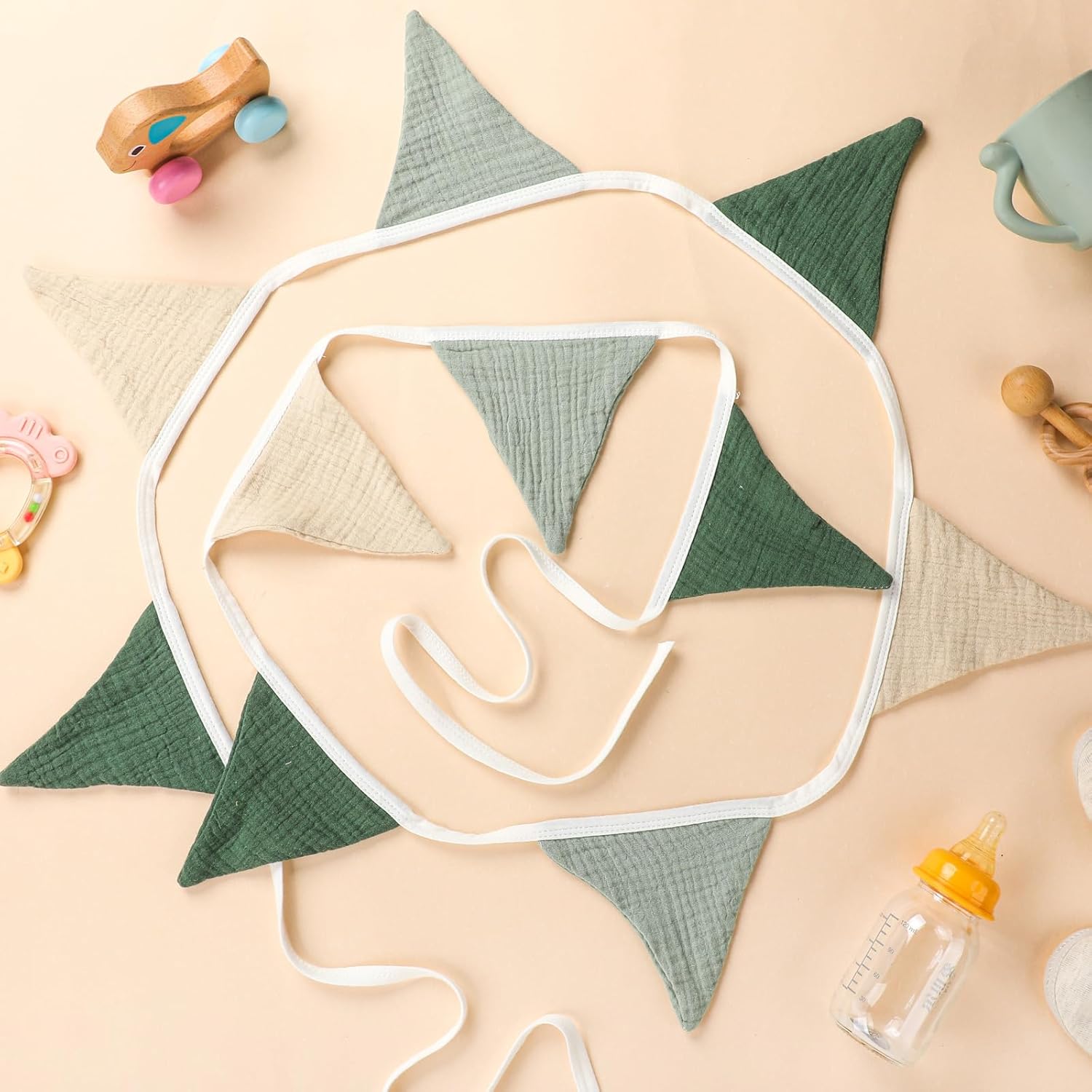 - Multiple Colors: there are different colors on the pennant flags, such as dark green, light green and beige, fresh and naturally, enough to attract the attention of boys and girls, also can create a lively party atmosphere