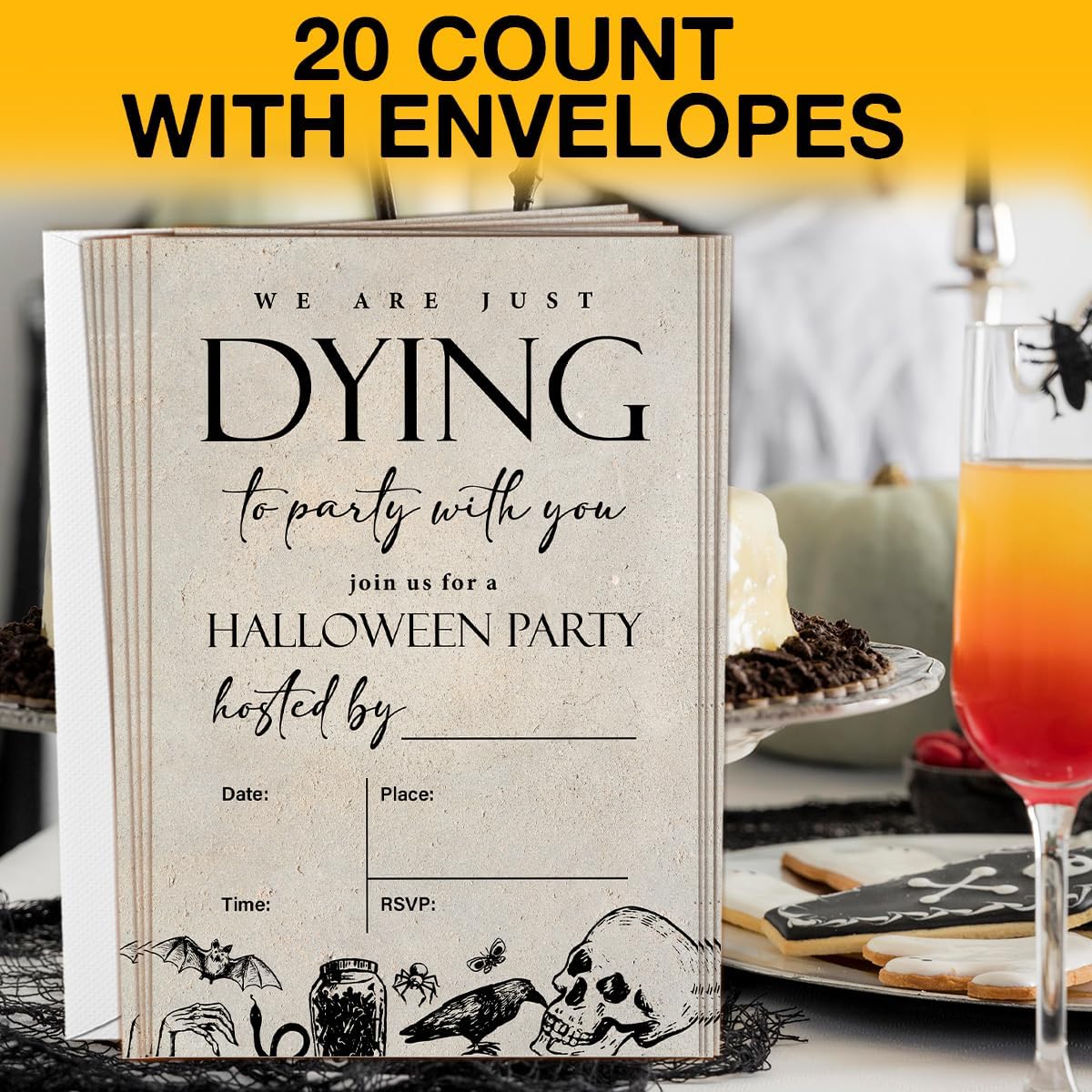Vintage Halloween Party Invitations for Adults Skull Halloween Party Fill in Invites Cards With Envelopes (20 Count), Double Sided Design