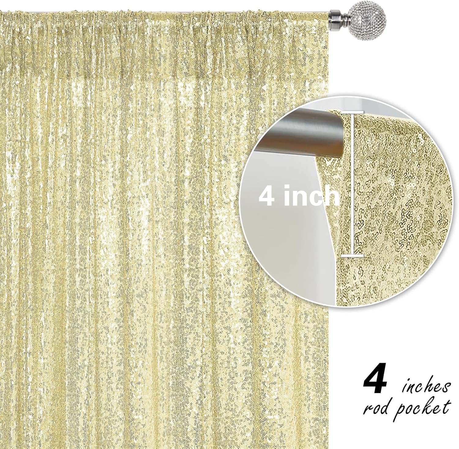 - Package Include: 2Pcs 2FT Wide X 8FT Height sequin backdrop curtain with a 4-inch wide rod pocket on the top, which is easy to install.