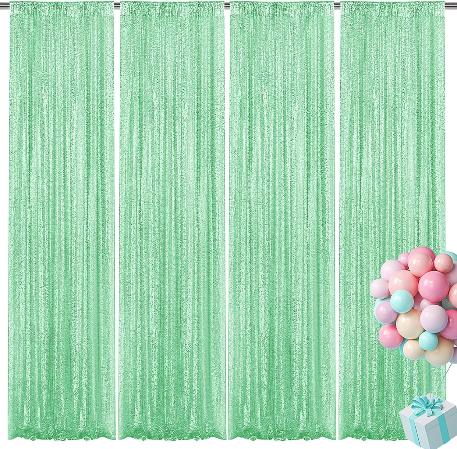 Mint Green Sequin Backdrop Curtain 4 Pieces 2FTx8FT Glitter Photography Backdrop for Party Wedding Birthday Christmas Decorations