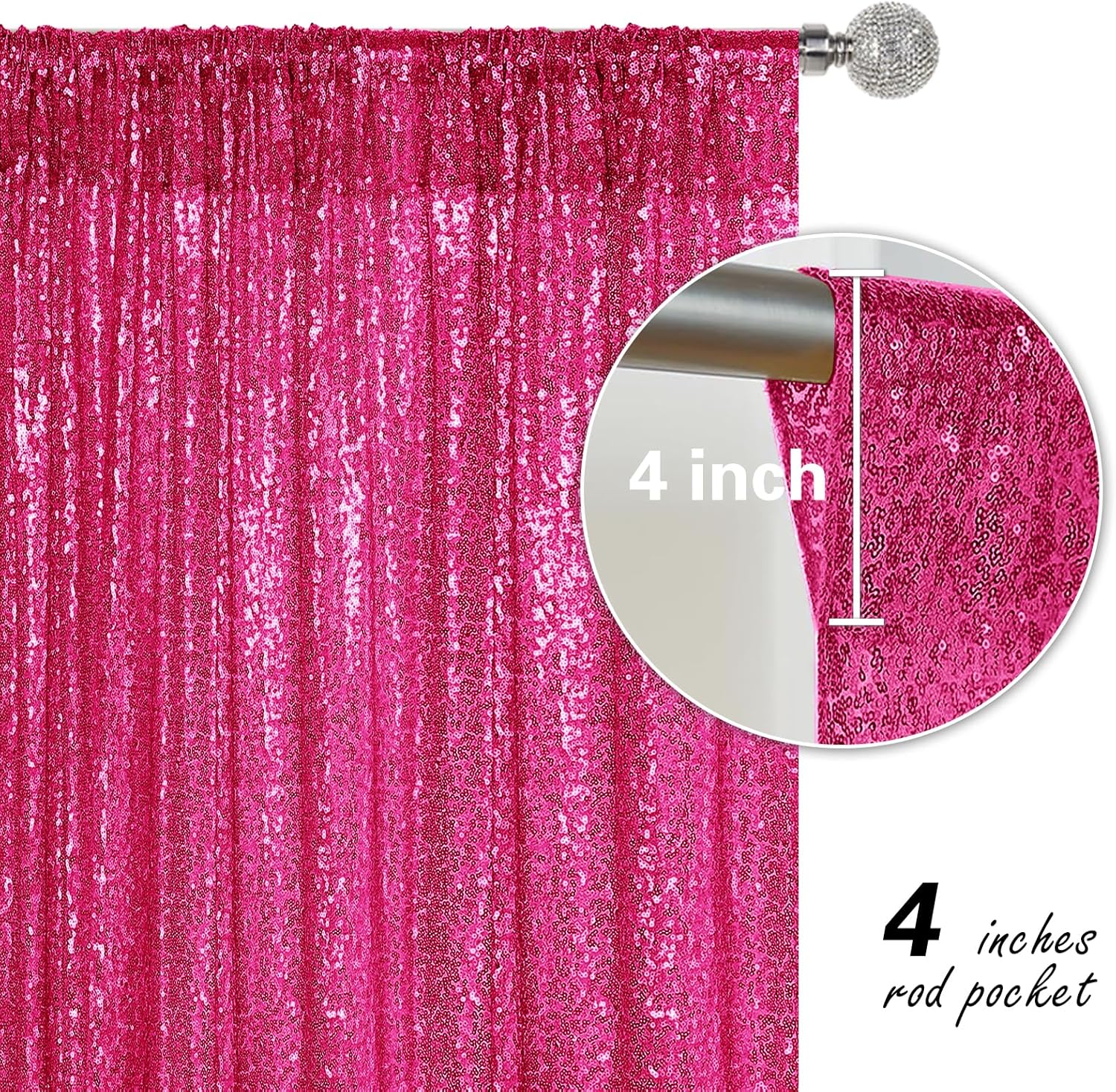 - Package Include: 2Pcs 2FT Wide X 8FT Height sequin backdrop curtain with a 4-inch wide rod pocket on the top, which is easy to install.