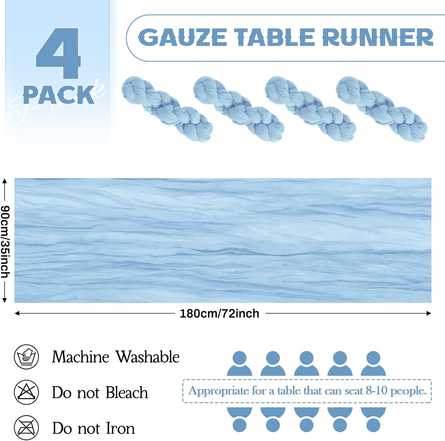 Aktor 4 Pack Light Blue Table Runner Boho Cheesecloth Table Runner Semi Sheer Gauze Fabric Runners for Wedding Birthday Baby Shower Party Boho Table Decoration(Light Blue)