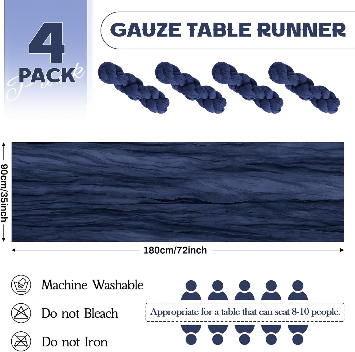 - 【 Package Included】 You will receive 4 piece navy blue cheesecloth table runners, the quantity is sufficient for your daily use and replacement needs. Cheese cloth table runner measure 35 inches wide and 72 inches long, it's long enough to fit different size tables and chairs. These table runners are skin-friendly as they are environmentally friendly. Aktor store has many different colors for you to choose. Perfect for romantic and elegant party events.