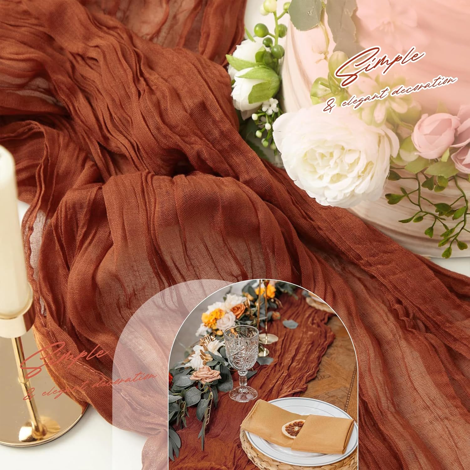 Aktor 4 Pack Terracotta Table Runner Boho Cheesecloth Table Runner Semi Sheer Gauze Fabric Runners for Wedding Birthday Baby Shower Party Boho Table Decoration(Terracotta)