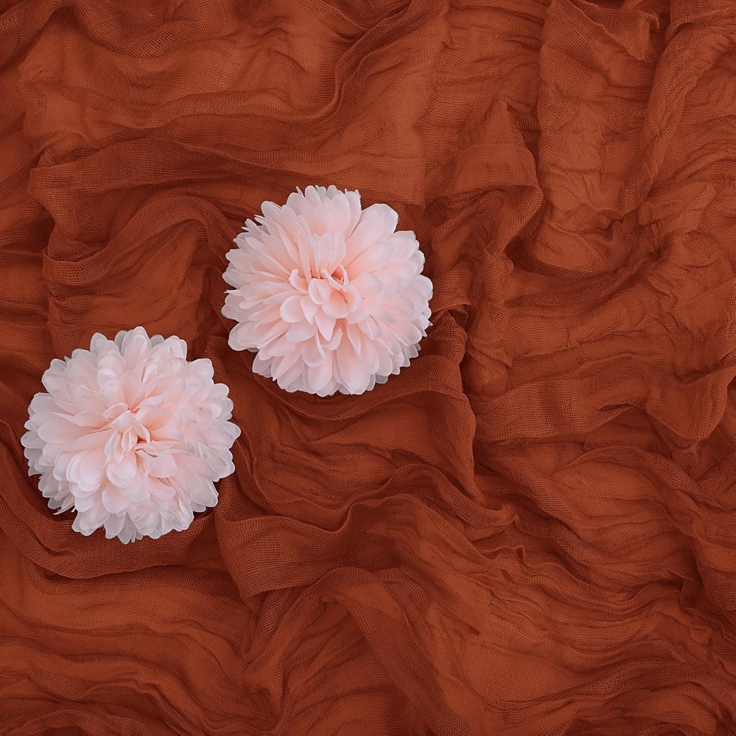 - 【Premium Material】 These romantic table runners are made from premium polyester fabric with beautiful wrinkles. Soft feeling, reusable, durable, washable and fade resistant. The edges of the table runner are nice and cleanly sewn. These cheesecloth table runners are nicely sheer and the perfect terracotta to match the rest of the decor for party, adding a touch of romantic and elegant to your events.