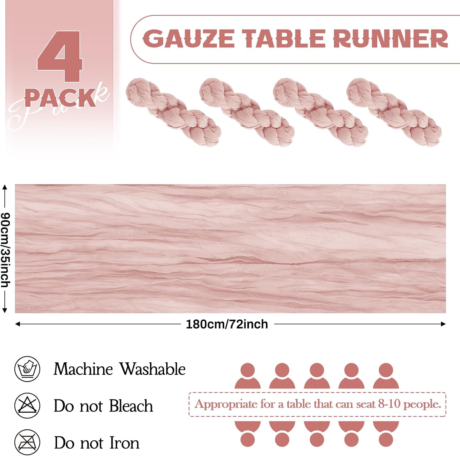 - 【 Package Included】 You will receive 4 piece dusty pink cheesecloth table runners, the quantity is sufficient for your daily use and replacement needs. Cheese cloth table runner measure 35 inches wide and 72 inches long, it's long enough to fit different size tables and chairs. These table runners are skin-friendly as they are environmentally friendly. Aktor store has many different colors for you to choose. Perfect for romantic and elegant party events.