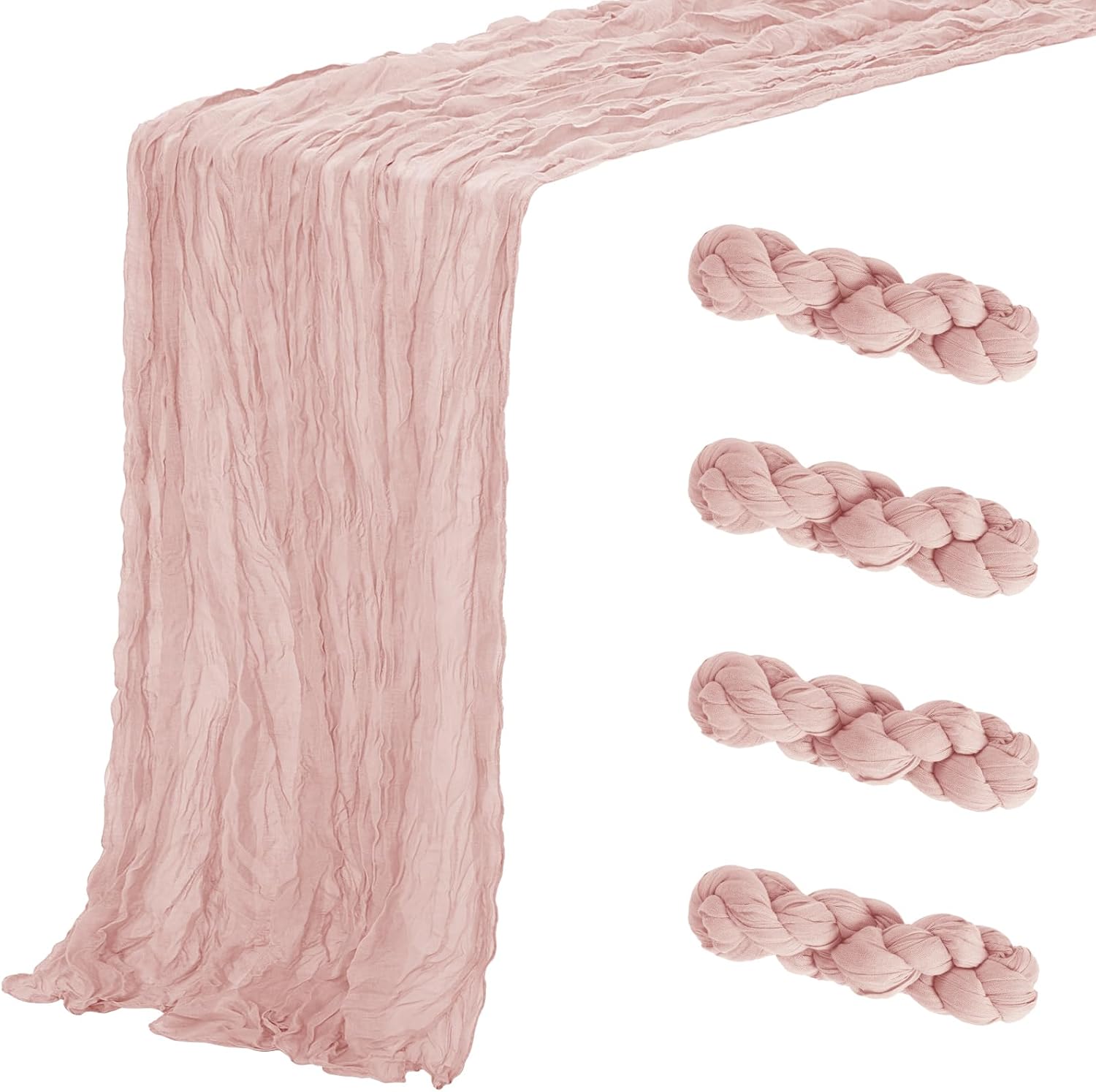 Aktor 4 Pack Dusty Pink Table Runner Boho Cheesecloth Table Runner Semi Sheer Gauze Fabric Runners for Wedding Birthday Baby Shower Party Boho Table Decoration(Dusty Pink)