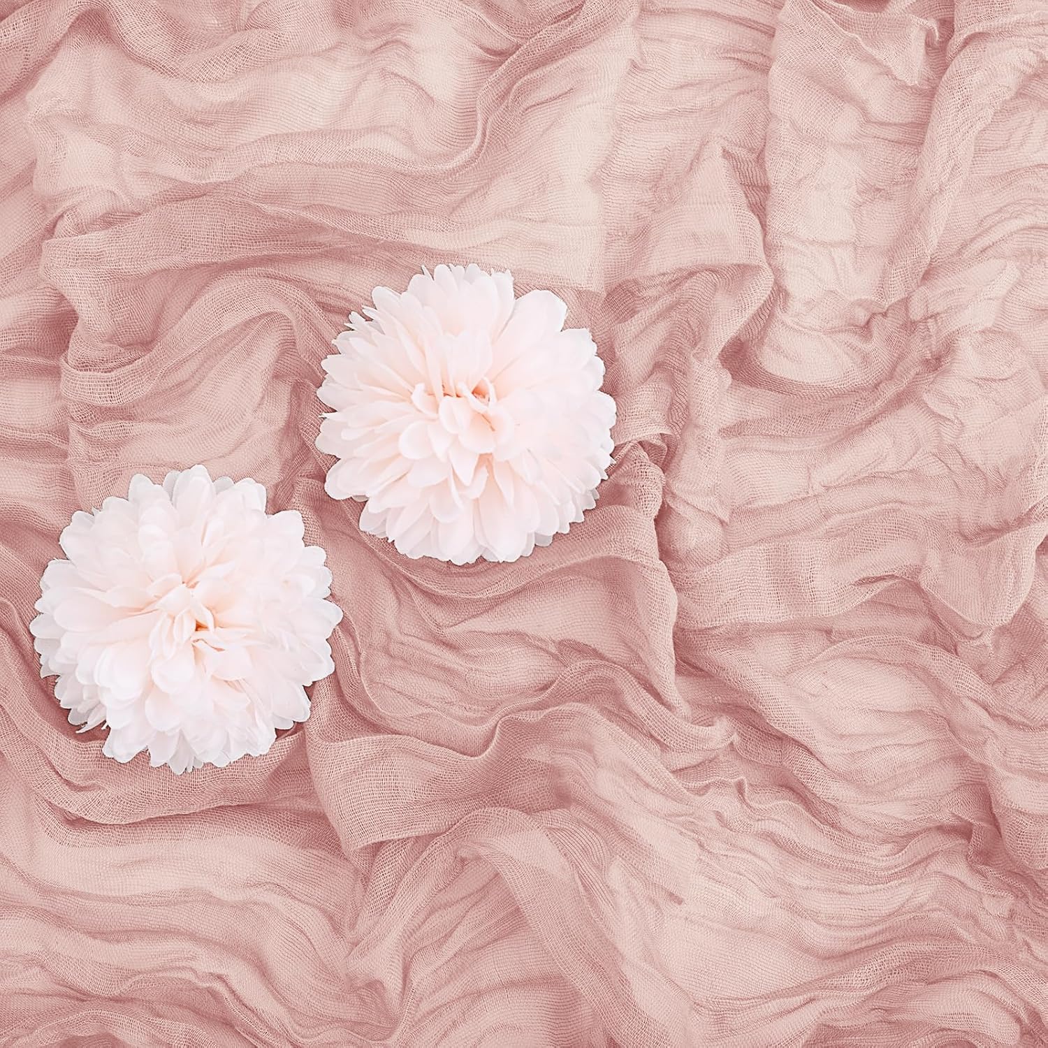 - 【Premium Material】 These romantic table runners are made from premium polyester fabric with beautiful wrinkles. Soft feeling, reusable, durable, washable and fade resistant. The edges of the table runner are nice and cleanly sewn. These cheesecloth table runners are nicely sheer and the perfect dusty pink to match the rest of the decor for party, adding a touch of romantic and elegant to your events.
