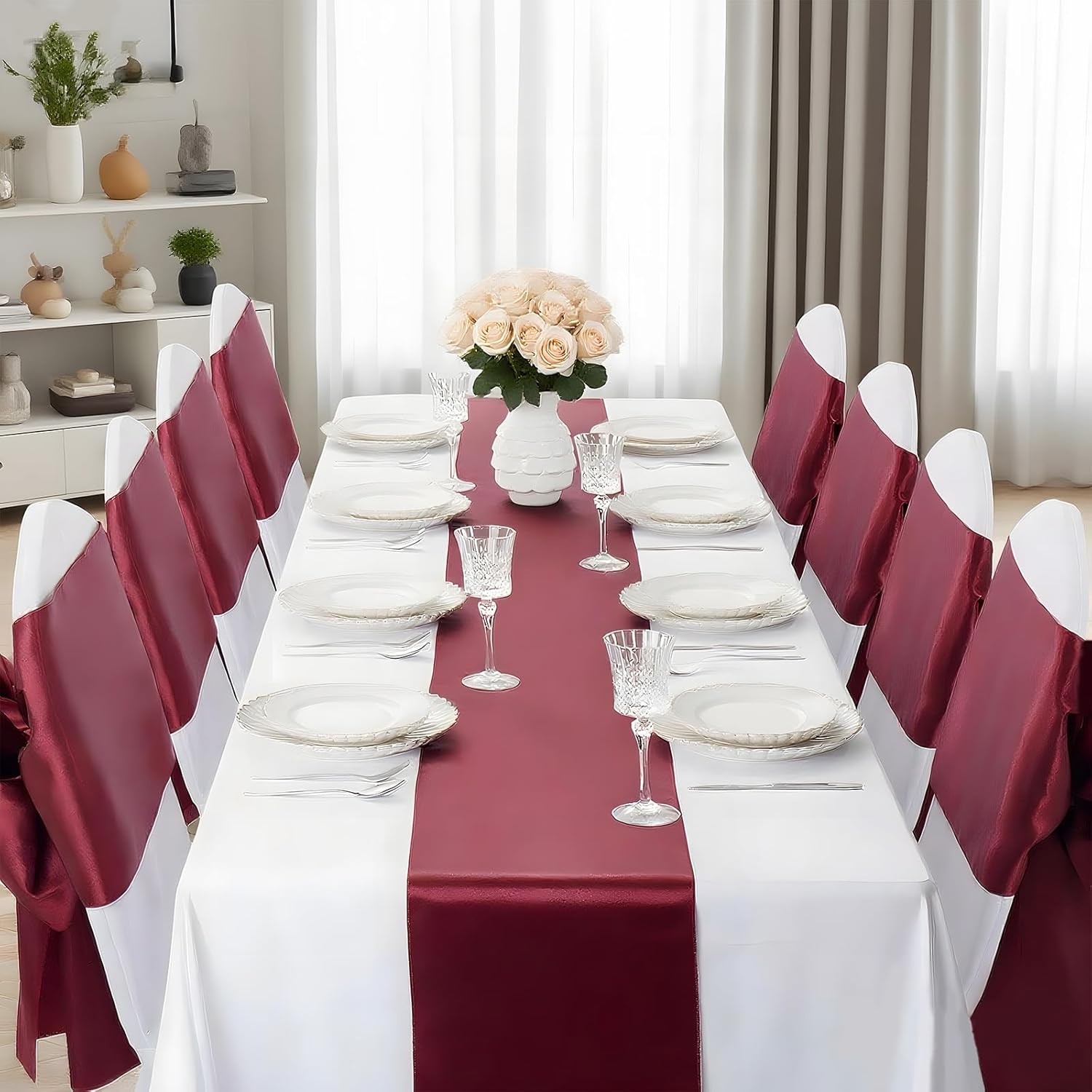 - Versatile & Elegant Use of Wine Red Table Runner: Perfect for every celebration, this satin table runner instantly elevates Christmas, weddings, birthdays, banquets, baby showers, and special occasions. Use it as a sophisticated table accent or tie it into a bow for charming chair decor. The rich, solid-color design brings a polished, luxurious touch to any event—making your party shine brighter!