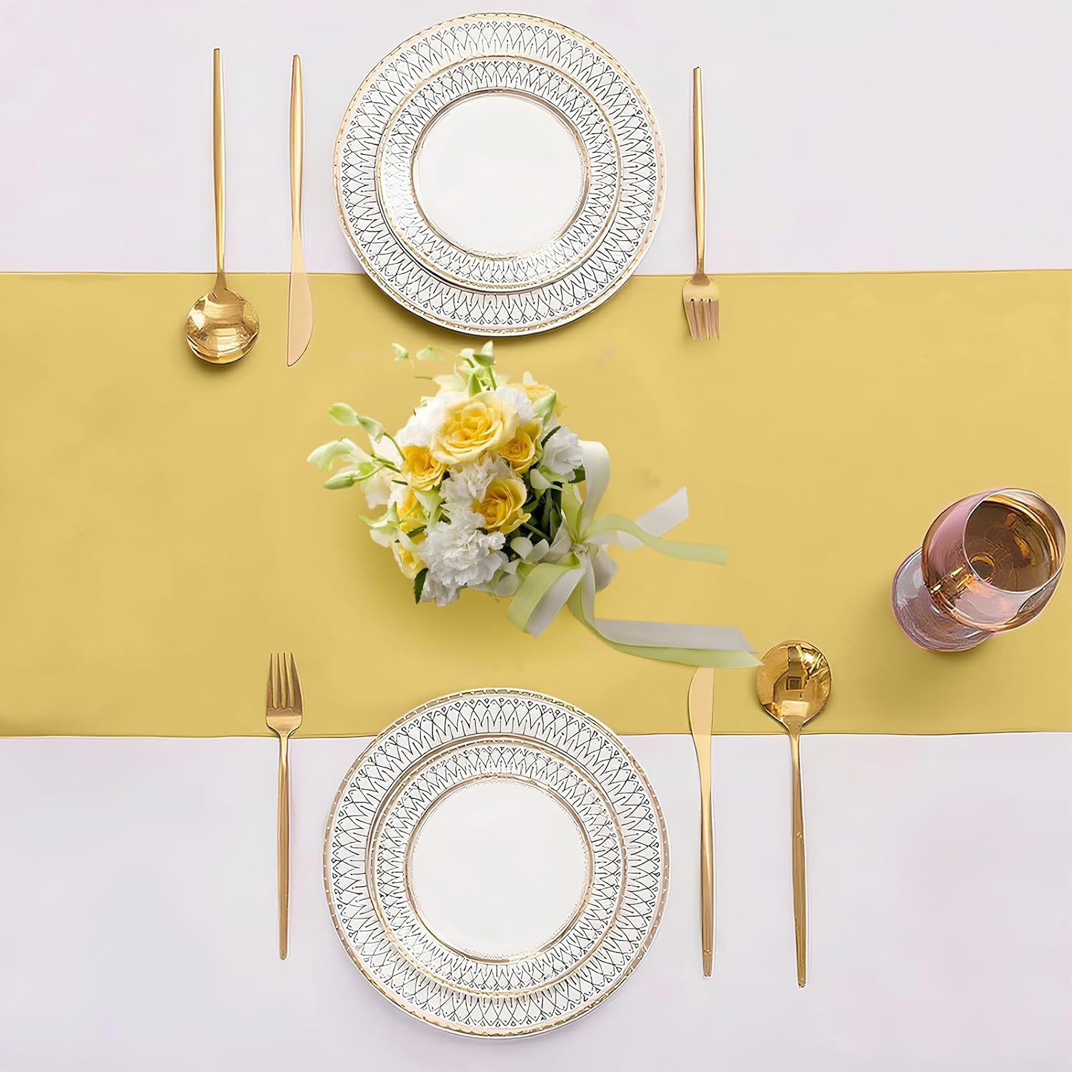 - Stress-Free Cleanup with Gold Satin Table Runner: These silky gold table runners make post-event cleanup effortless - just toss these gold runners after use! Spend less time cleaning and more time celebrating with loved ones. This is a great gold christmas table runner as well.