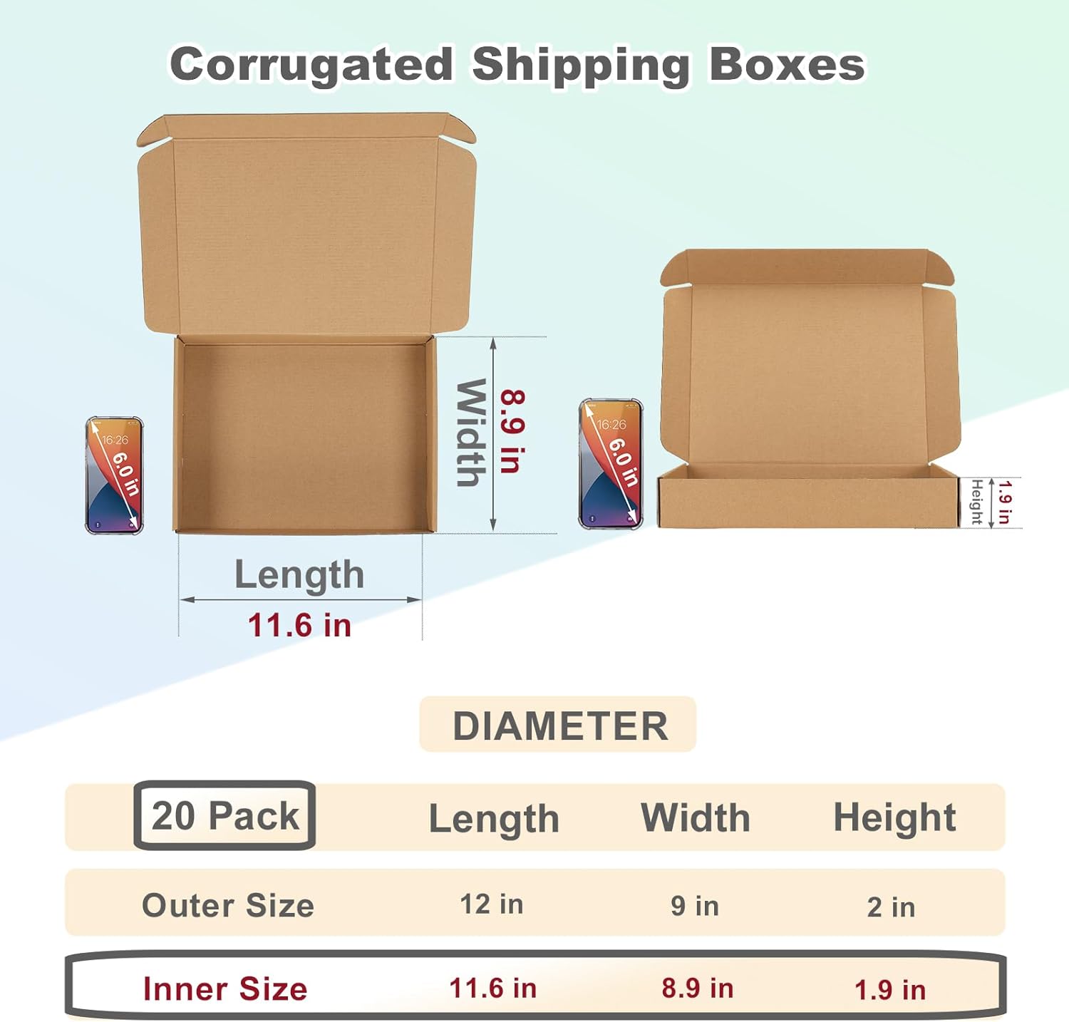 - Pack of 20: The size of white cardboard boxes is 12 x 9 x 2 boxes, and 20 mailer boxes are packaged in a carton. flat shipping flat packaging saves space and makes storage more convenient.