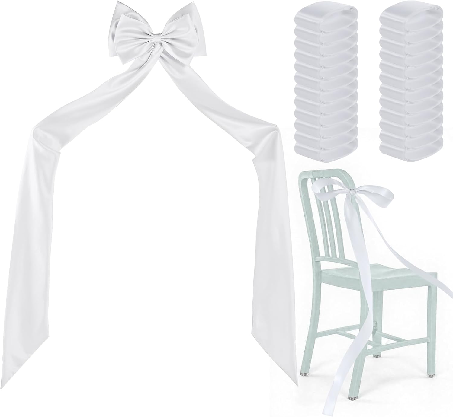 Big Bow with 24 Pcs Chair Ribbon Wedding Aisle Decorations, 78x18 inch Giant Bow for Backdrop Detachable Bow for Dress, Pew Bows Sashes for Chair Wedding Ceremony Outdoor Party (White)