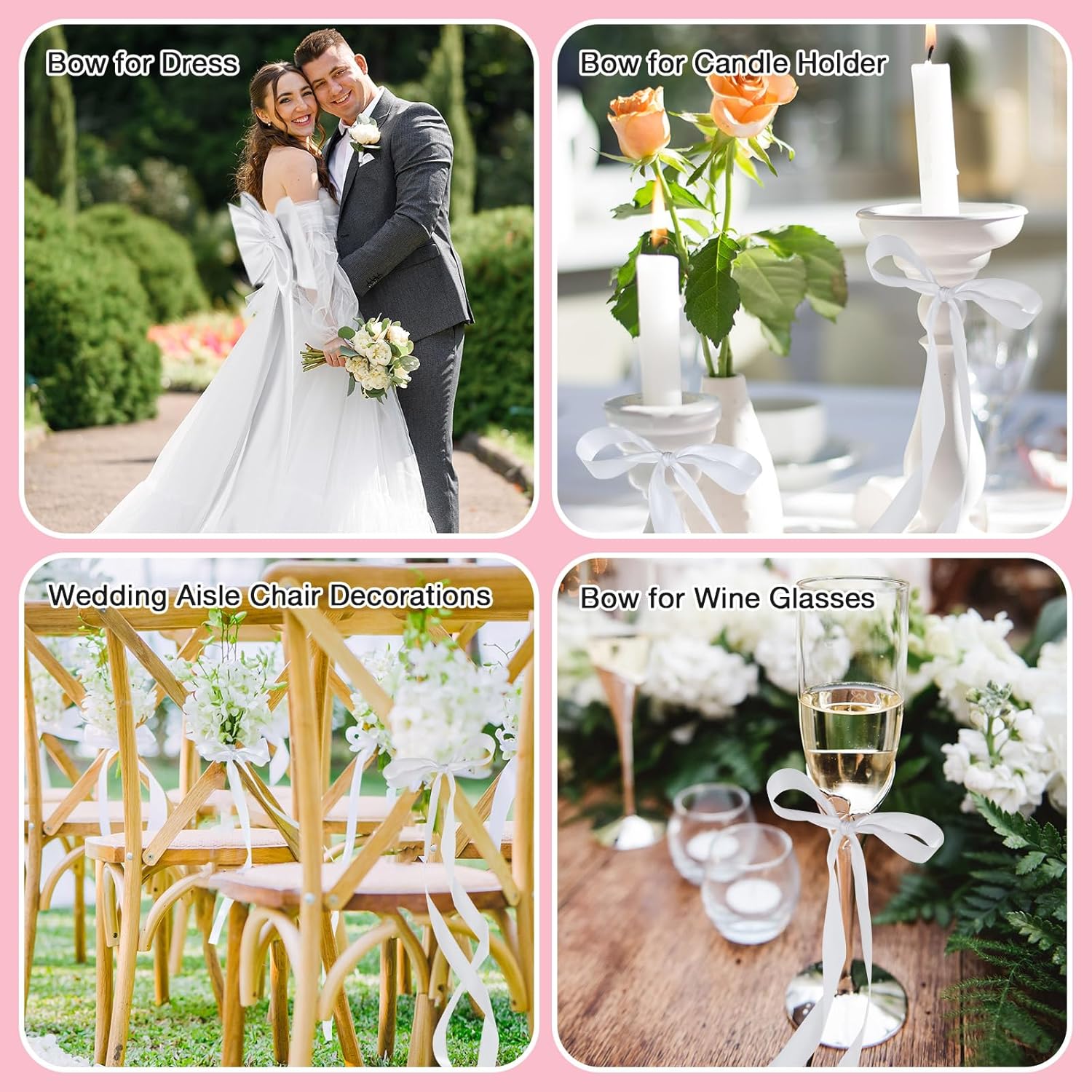 - Versatile Designs: With 24 included satin ribbons (1.5 inches wide and 118 inches long) packed flatly, these wedding aisle decorations are suitable for various settings—be it outdoor lawn weddings, baby showers, or festive parties, as bow for decorative candle holder and wine glasses. Transform any event into a beautifully styled occasion!