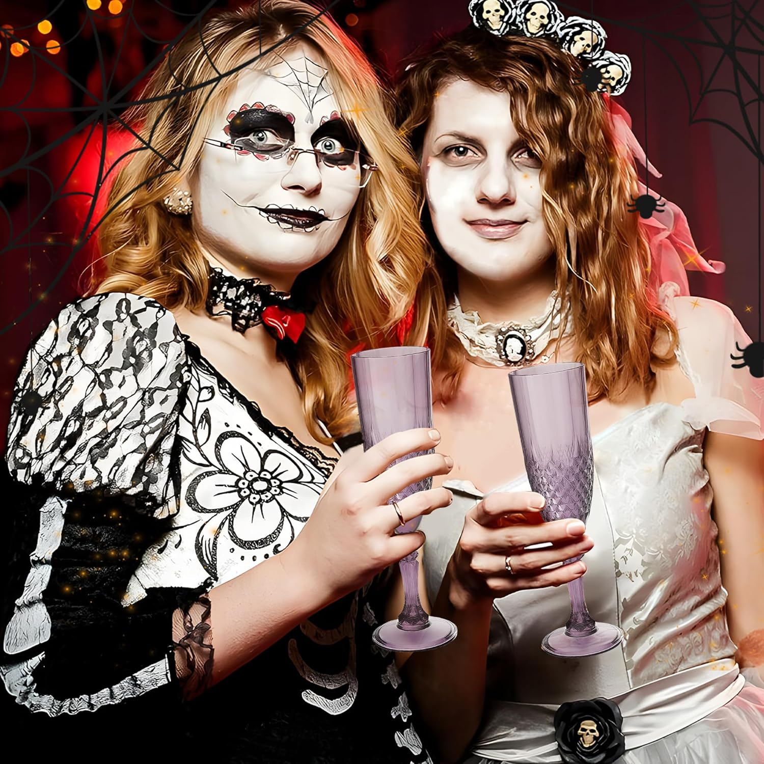 Plastic Champagne Flutes, 12PCS Dark Purple Wine Glasses Goblets Cups Reusable Flute, for Halloween Weddings Bachelor Parties Toasting and Events(12, Dark Purple)