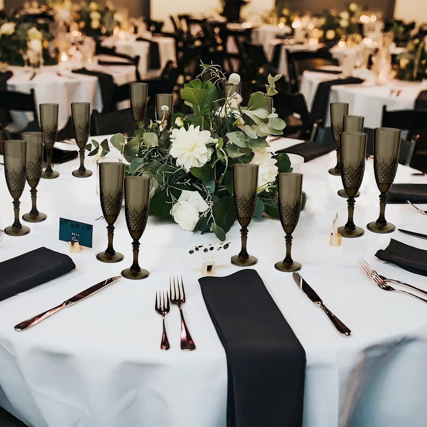 - Charming Set: Champagne flutes set include 24 retro-style black champagne plastic wine glasses, providing ample quantity to meet your daily use and replacement needs. A suitable champagne cup is the icing on the cake. Plastic wine glasses not only carry the wine, but also carries the laughter and blessings