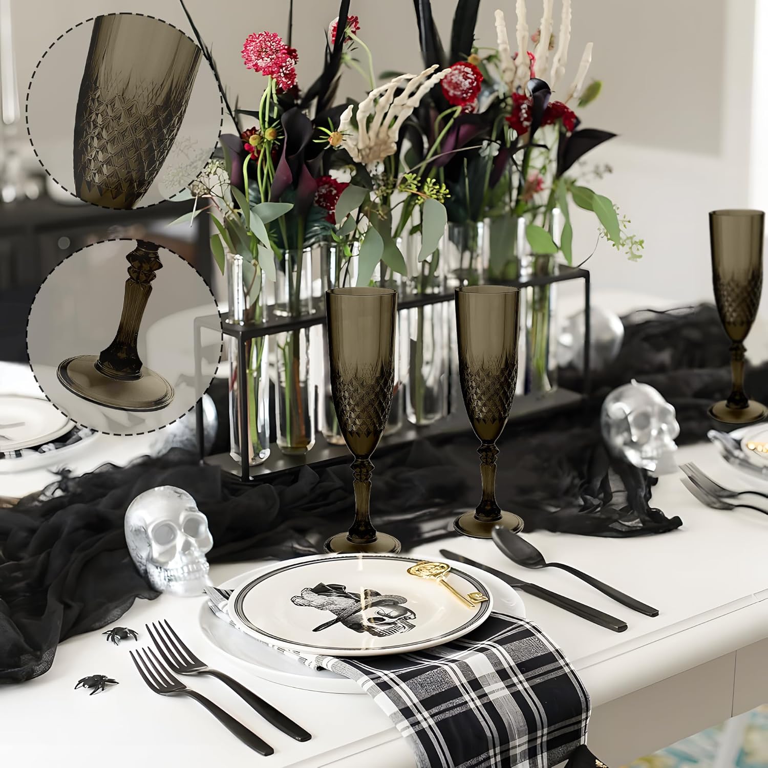 Plastic Champagne Flutes, 24PCS Black Wine Glasses Goblets Cups Reusable Flute, for Halloween Weddings Bachelor Parties Toasting and Events (24, Black)