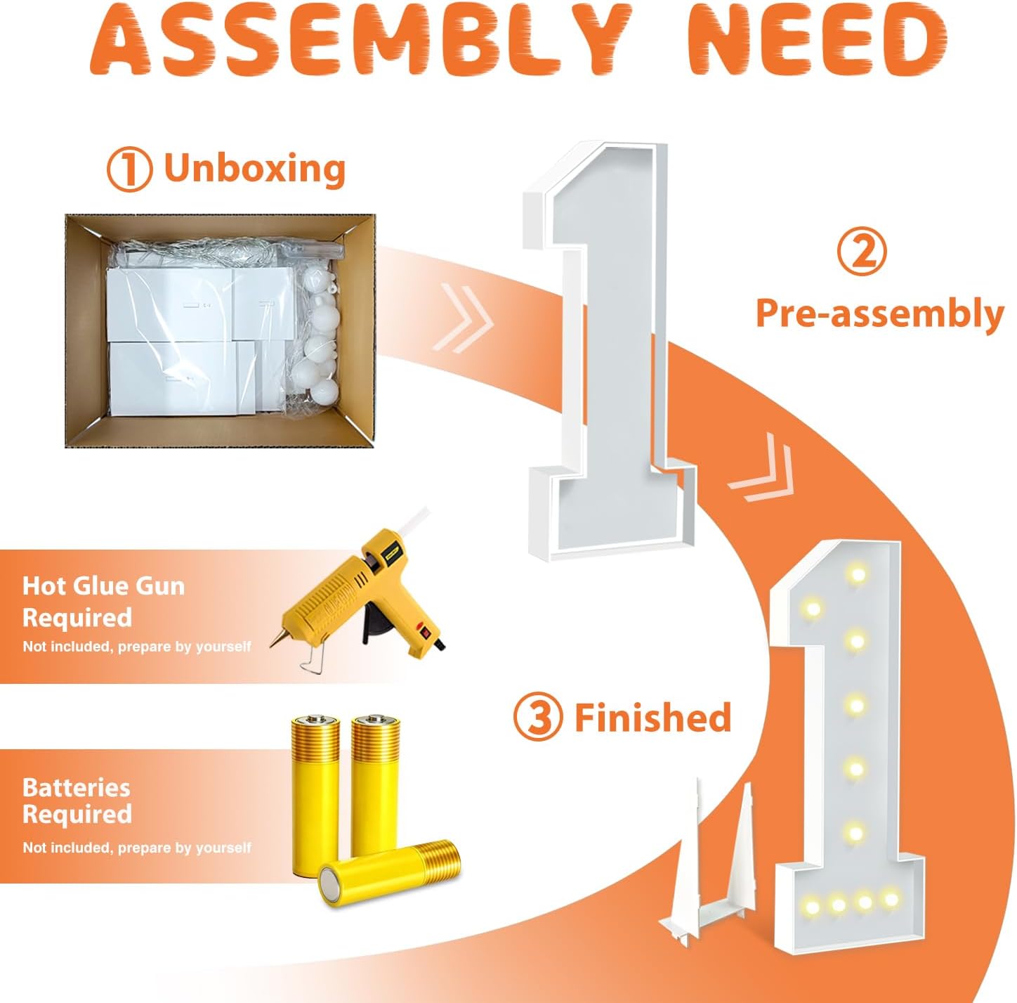 - EASY TO ASSEMBLE: The package includes pre-cut foam boards, light strings and instructions. Each foam board has slots and is numbered, so you can match them according to the 2 same numbers. All you need to do is to prepare a hot glue gun and 3 AA batteries, follow the step-by-step instructions or online video for a hassle-free assembly. Decorate the party with your kids or friends and enjoy the DIY fun. (Note: Glue gun, glue and batteries are not included)