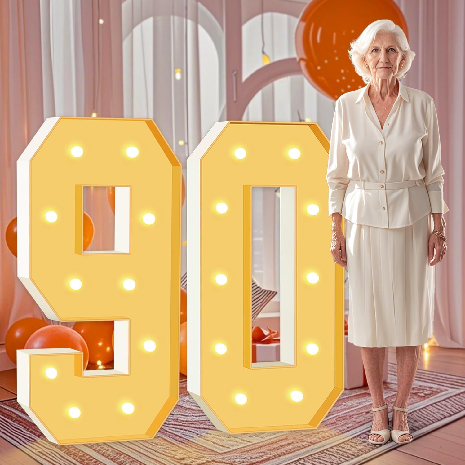 4FT Marquee Numbers 90, Large Light Up Numbers 90th Birthday Decorations for Her Him, Cardboard Number for Women Men Seniors Anniversary Party Decor Backdrop, DIY Foam Board Mosaic Number Sign