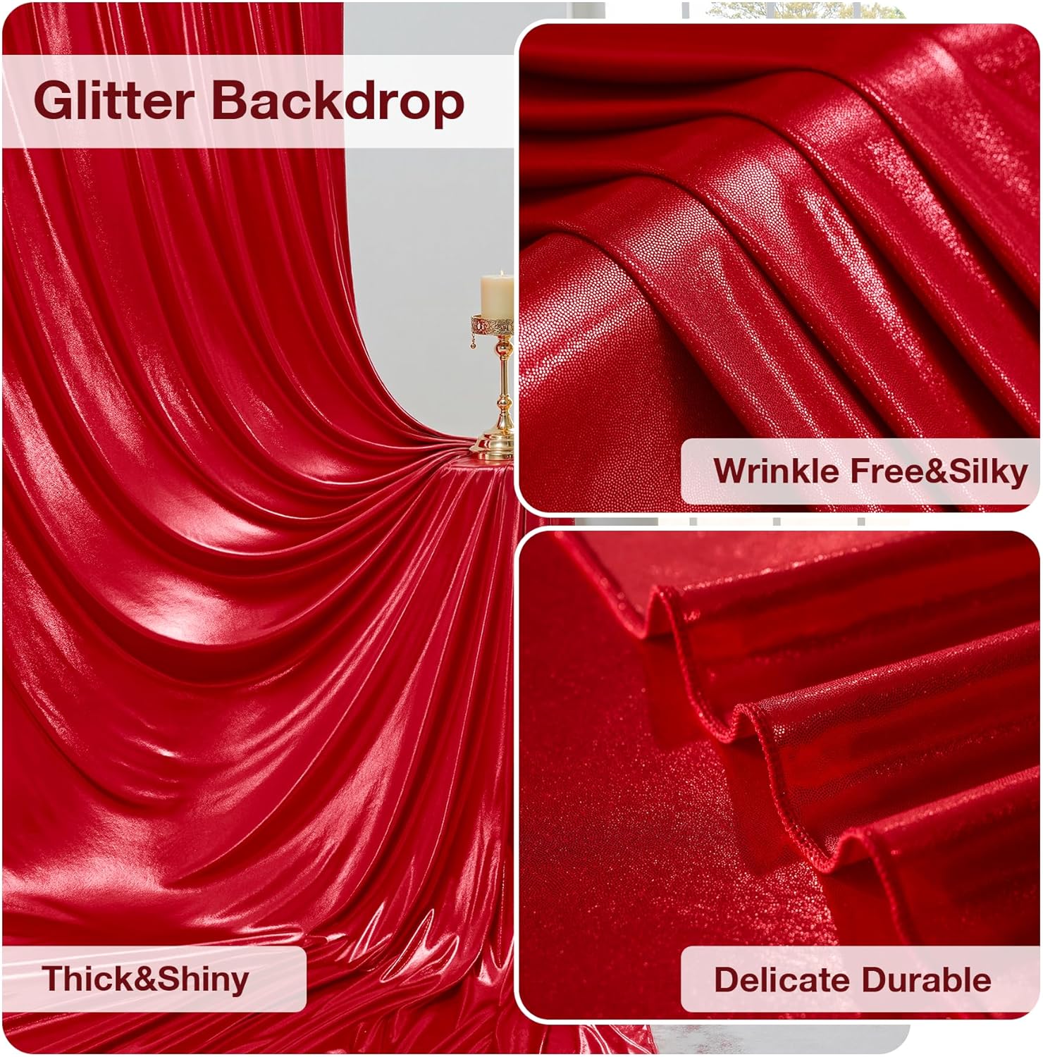 - Versatile Red Shimmer Curtains- The 10ft tall r shimmer dewall backdrop are perfect for kinds of occassions. such as: wedding,parties,bridal and baby shower,candy buffets,stage backdrop,photo backdrop for photography,birthday theme party backdrop,photobooth,photoshoot,reception background,graduation,ceremony,haloween,christmas,home decoration and more drapes for backdrops with ballon, flowers, lights, banners decorations.
