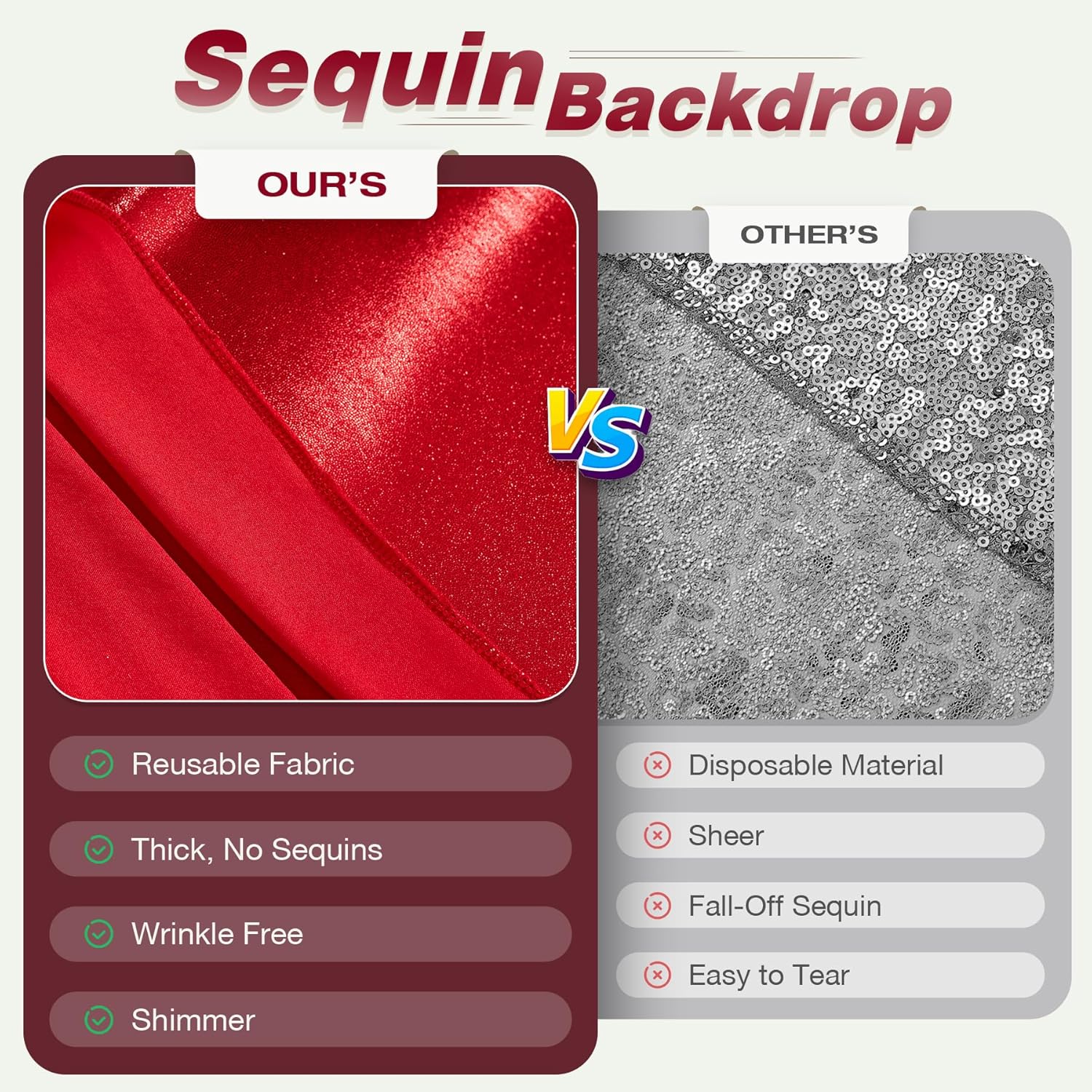 - Not Fall Off Sequin- Red Sequin Backdrop - The red backdrop curtain is adopts the hot stamping process on polyester backdrop curtains, not sequin but glitter backdrop, wasable and not fall of sequin, thick and not see through sparkle backdrop.cortina para festa decorations.