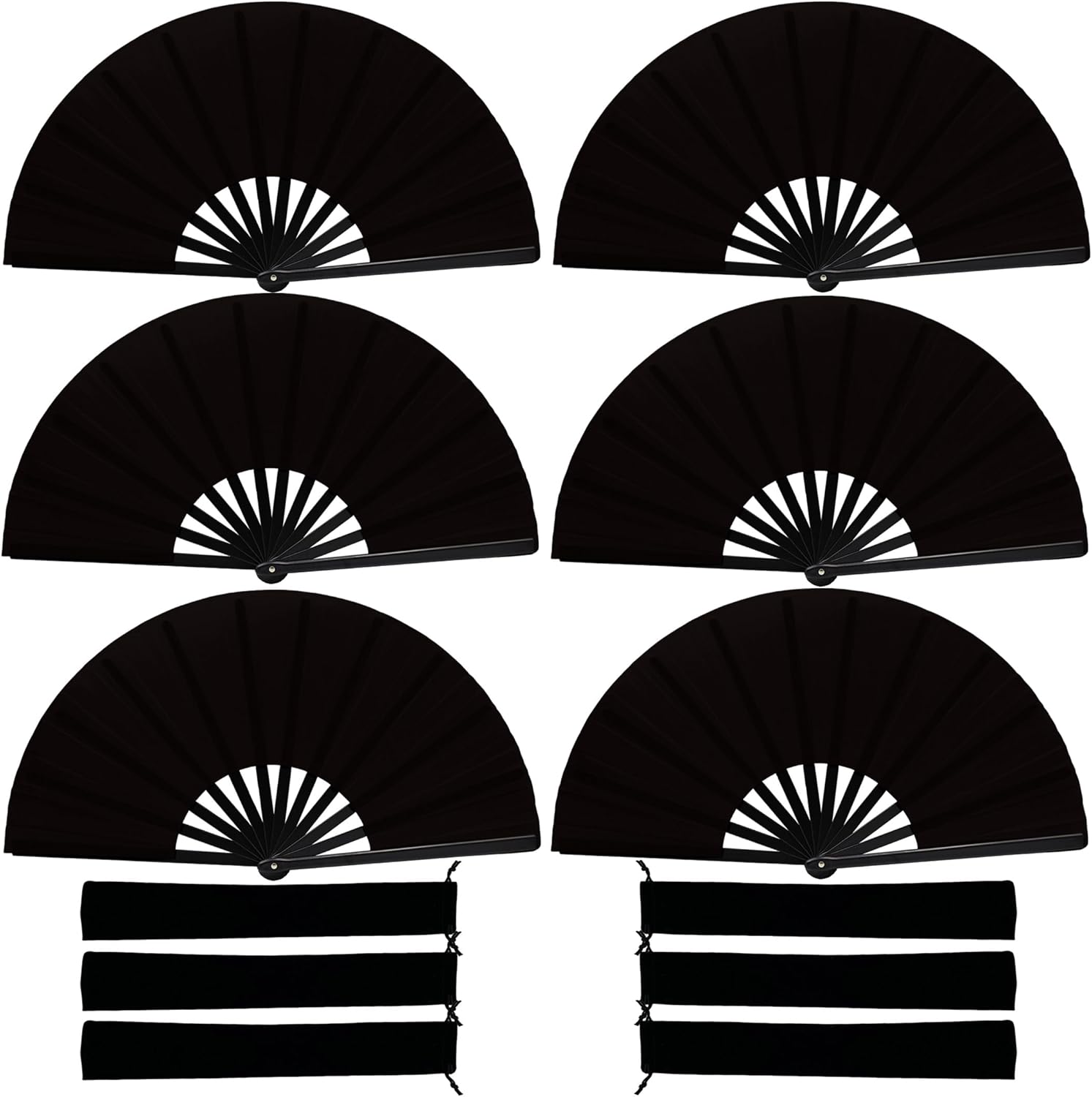 13inch Large Rave Fan Popping Clacking Fans for Line Dancing,Hand Fans for Women Foldable,Boots on The Ground Fan,Portable for Outdoor,Wedding,Party,Decoration (6pcs Black)
