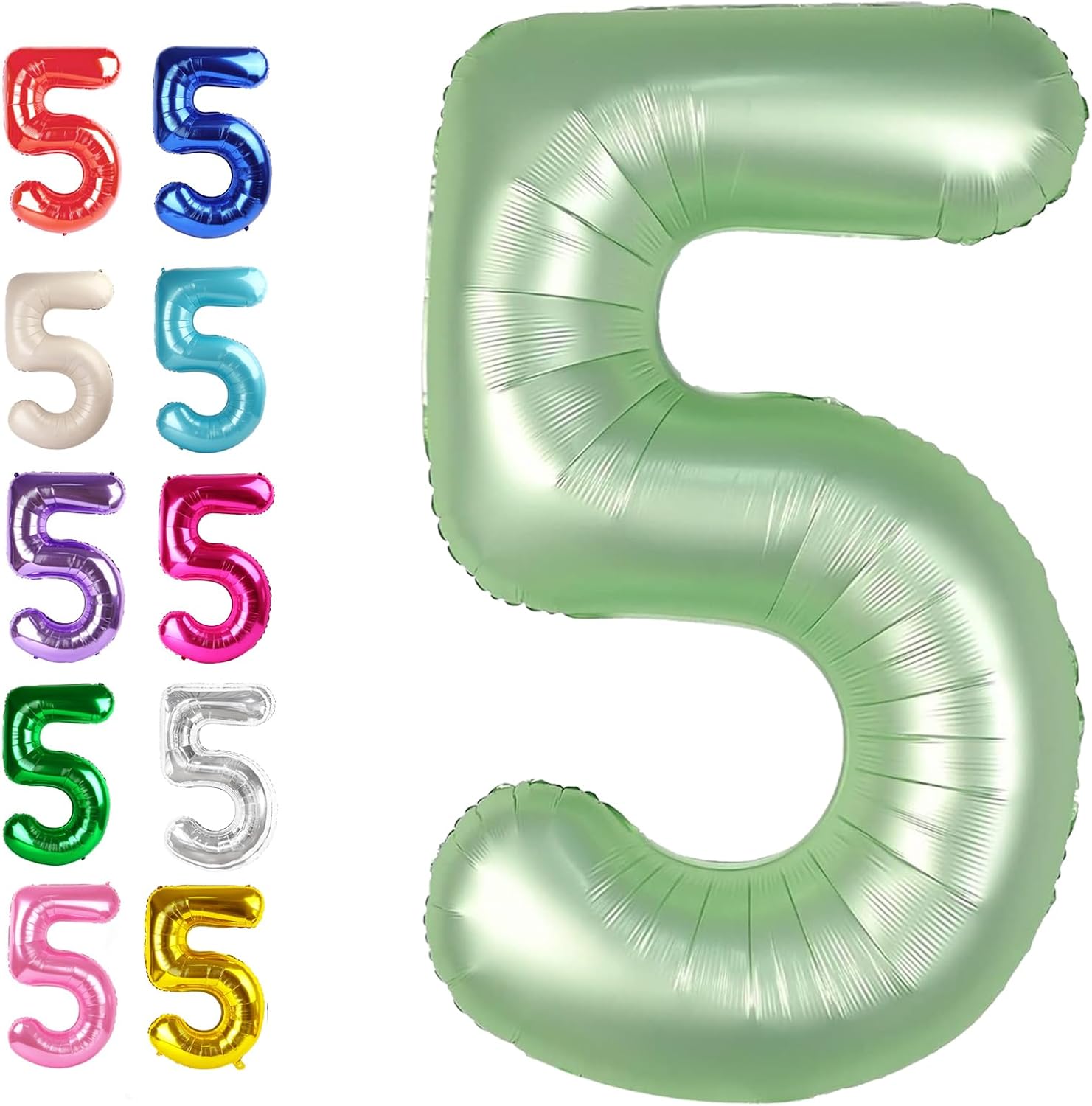 - 1.Noble Romantic Oliver Green Number Balloons:You will receive an uninflated 40 inch sage green number 5 balloon.Balloons are always the best statement of romance surprise.Green happy birthday balloons symbolize eternal magical,adding glamour to sage green birthday parties.Elegant green and huge size make sage green balloon birthday a highlight of special parties.Choose one or more numbers from 0-9 numberballoon,and use 5th 5 15 25 35 45 55 65 75 85 95 balloons number to create a lively party!