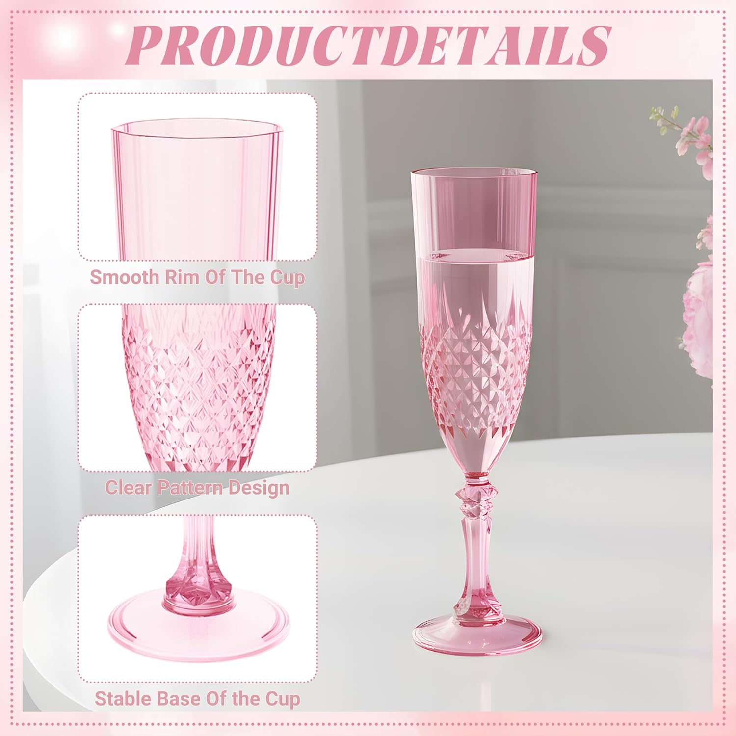 - Charming Set: Champagne flutes set include 100 retro-style pink champagne plastic wine glasses, providing ample quantity to meet your daily use and replacement needs. A suitable champagne cup is the icing on the cake. Plastic wine glasses not only carry the wine, but also carries the laughter and blessings