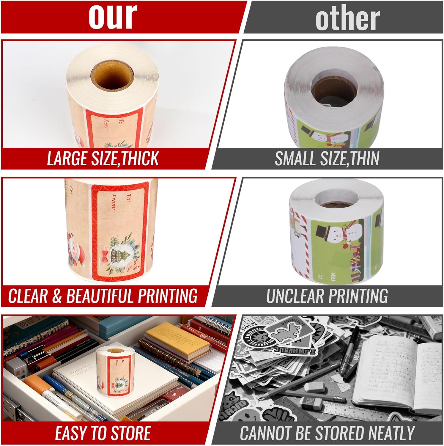 - Classic Christmas Design: Indulge in classic Christmas charm with 500 self-adhesive gift stickers in 8 festive designs; Perfect for tagging, decorating, and sharing the joy with friends and family