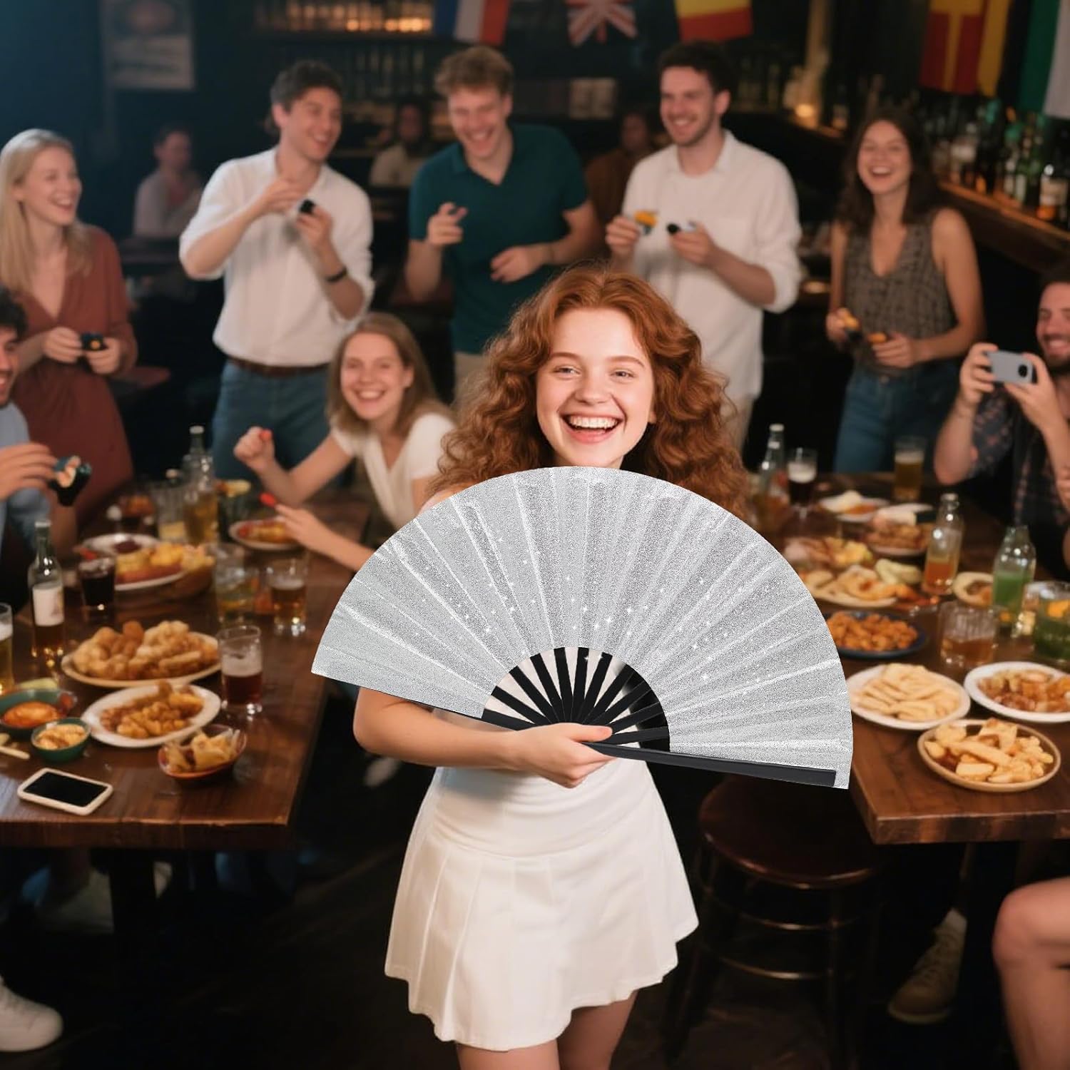- MASTERFUL DESIGN: With a swift snap of the wrist, our large hand fans open up, producing a satisfying clack sound. The opening and closing mechanism is smooth and effortless. Whether you're attending a rave or a music festival, our hand fans are an indispensable accessory.
