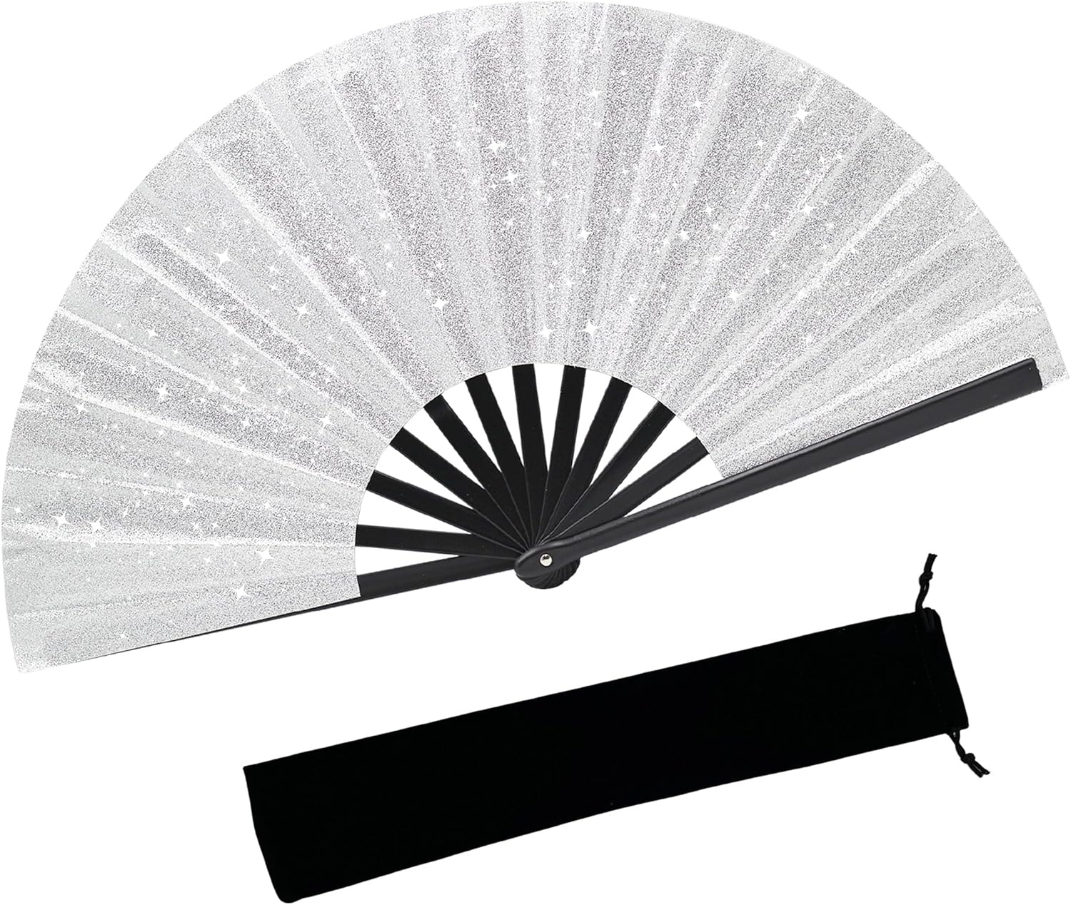 Glitter bling Large Folding Fan-Hand Fan Rave Clack Popping Fan for Line Dancing Clacking Fans for Boots On The Ground Dance, Party for EDM, Music Festival, Hot Flashes, Party, Decoration(1pcs silver)