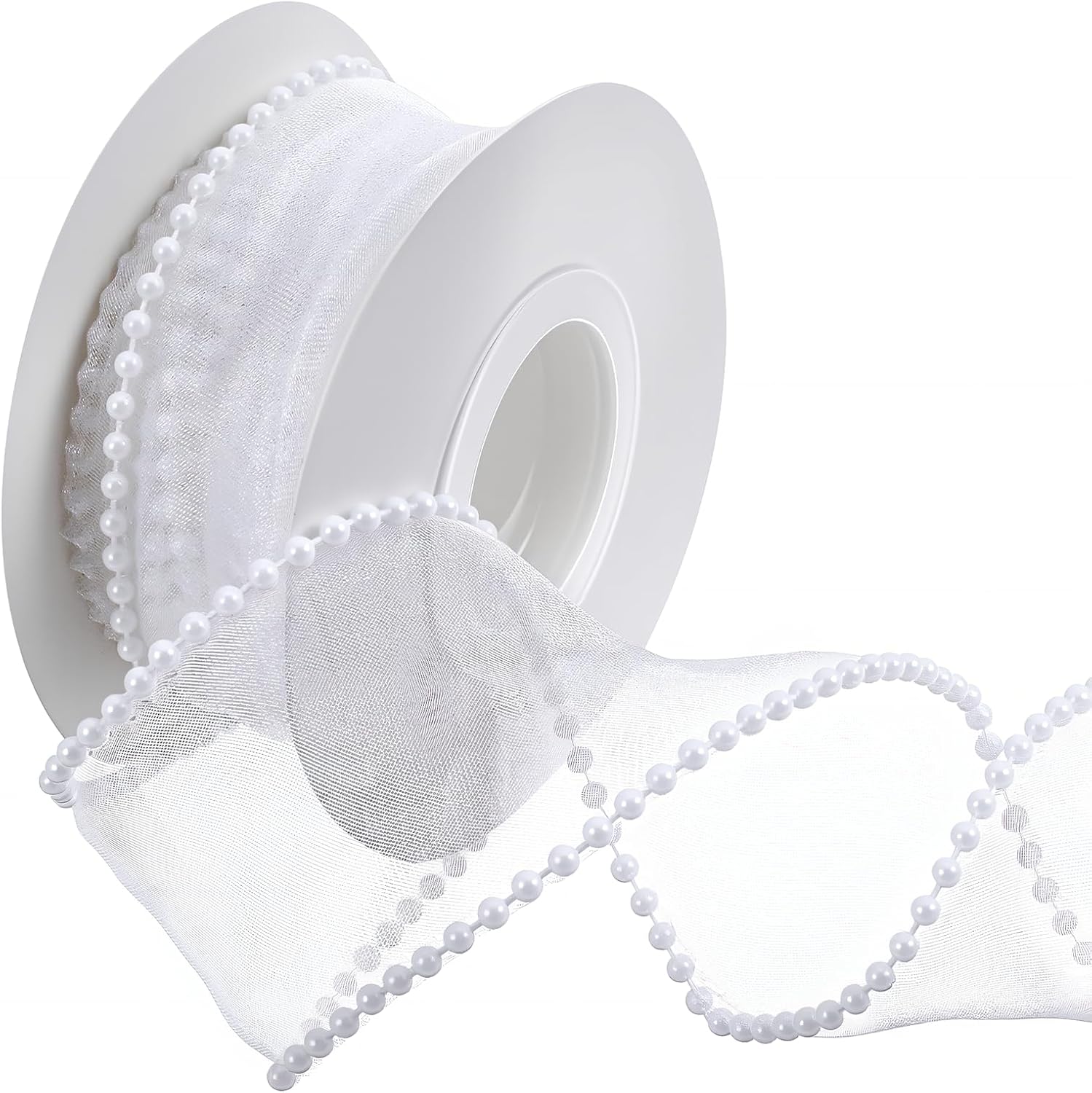 - Material: Crafted from high-quality sheer fabric with pearl and wire edges, this white ribbon is easy to shape, allowing you to create structured bows and loops effortlessly