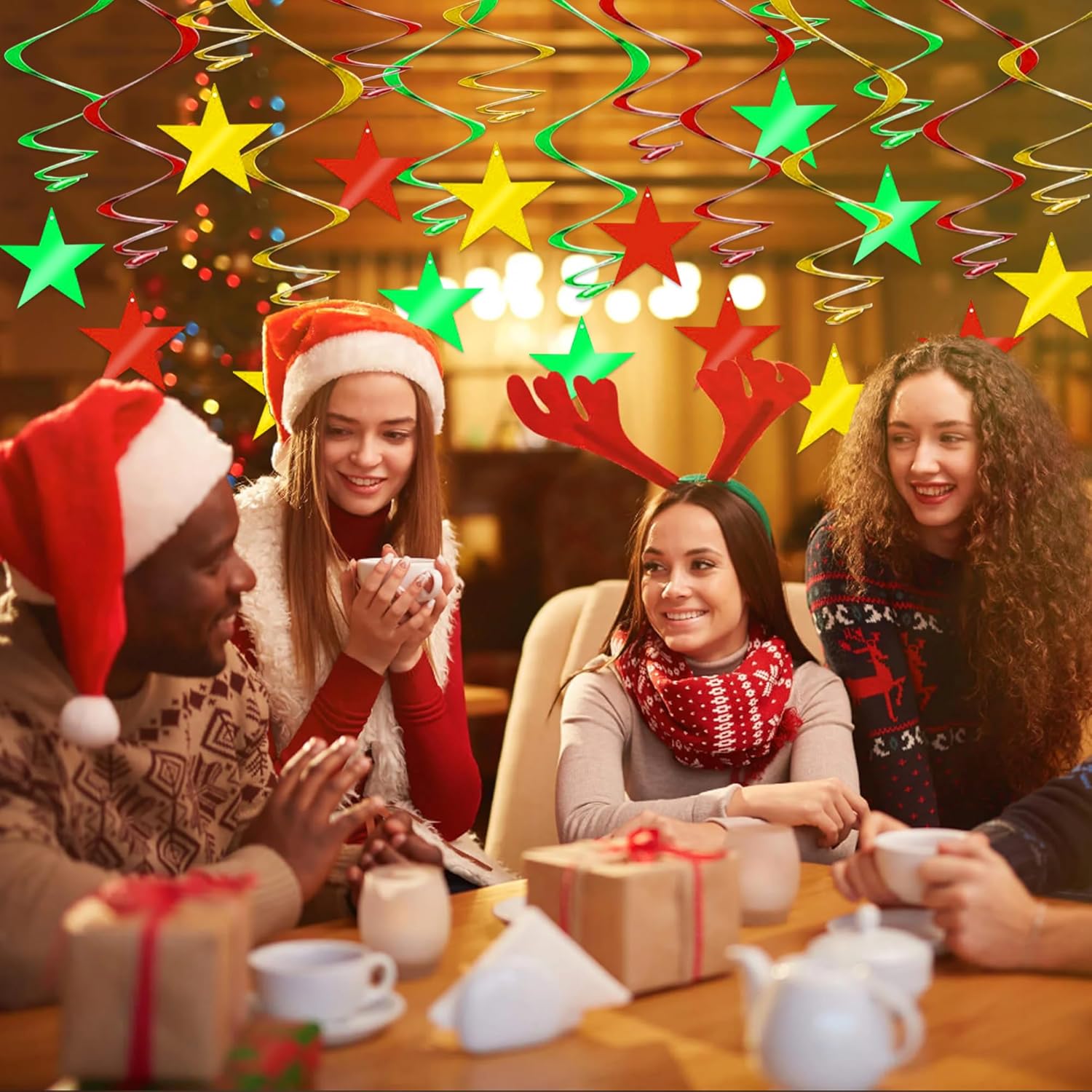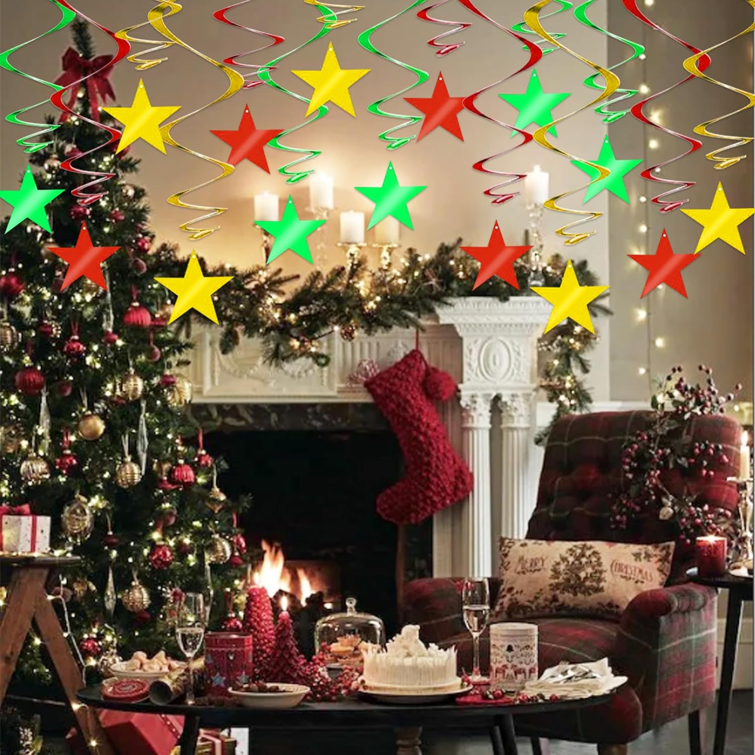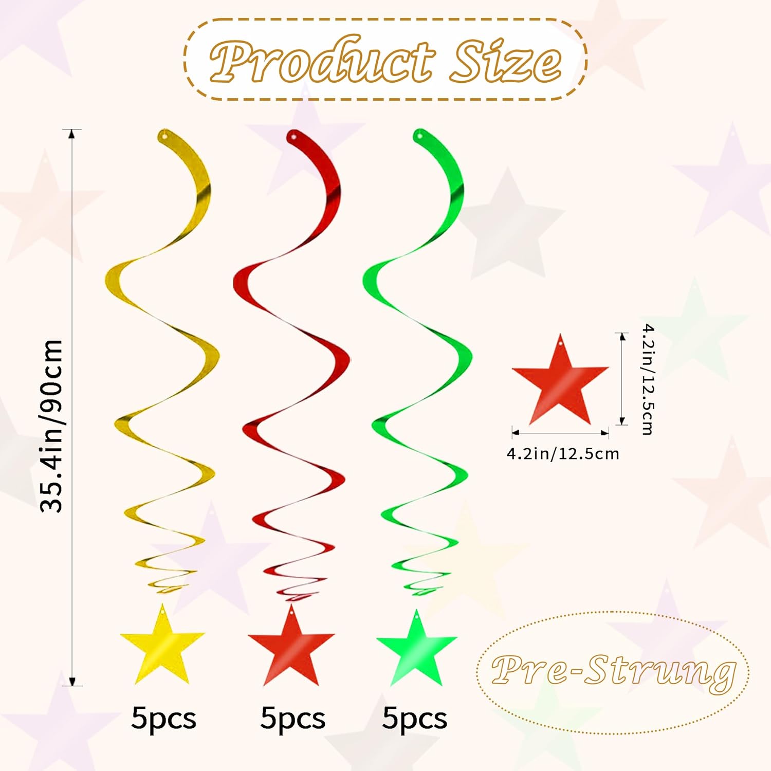 - 【Package include】A total of 15 pcs hanging swirl decorations, including 15 double swirls and 15 swirls with PVC star. There are 15 strings in total, each of which is connected with a double swirls and a PVC star. Flexible swirls, hanging length can extend to approx 36"/91cm long.