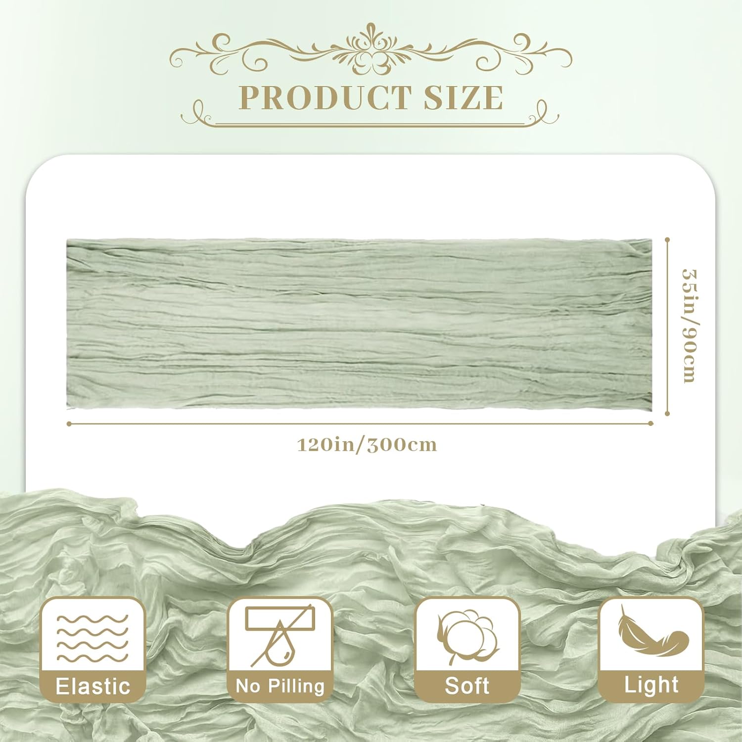 Le courant 6pcs 10Ft Cheesecloth Table Runner, Rustic Boho Gauze Cheese Cloth Runner Table Runner for Weddings Bridal Baby Shower Birthday Holiday Parties Home Decor, Sage Green