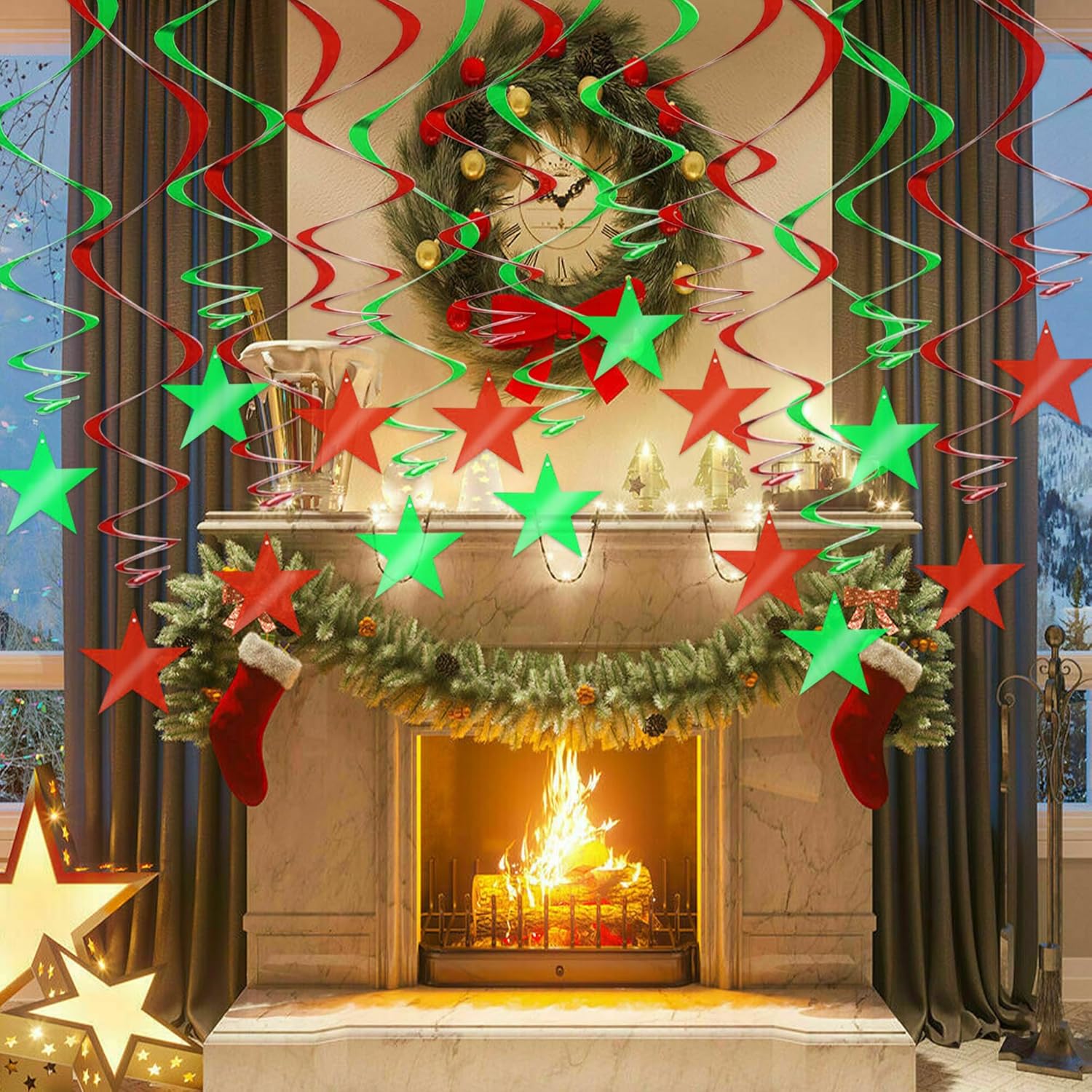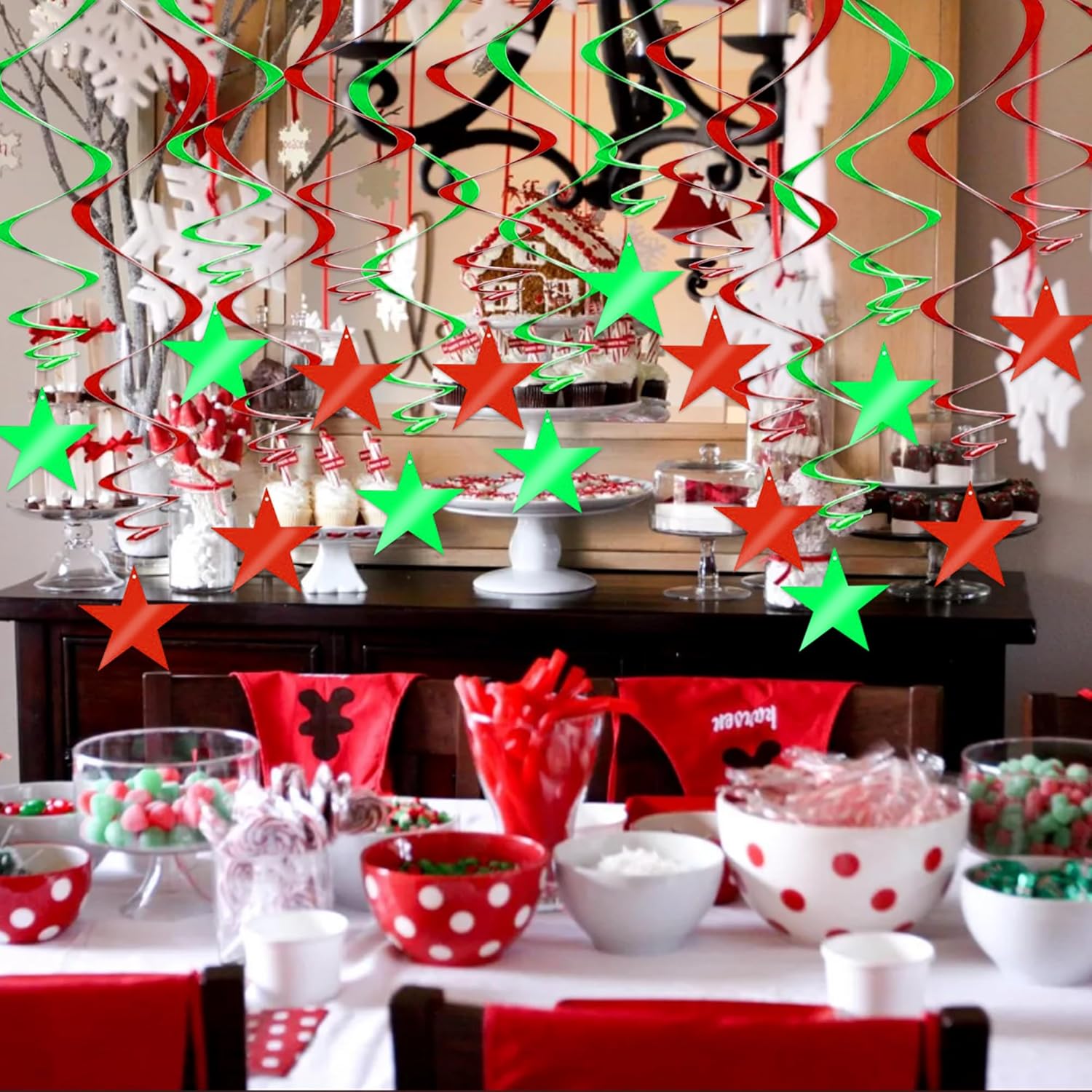 BEISHIDA Red Green Star Hanging Swirl Decorations, Birthday Hanging Party Supplies for Christmas Wedding Baby Shower Birthday Decorations,Pack of 15