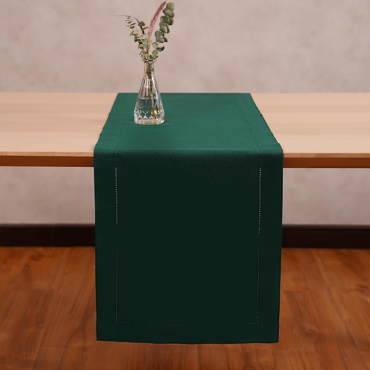- Cotton Linen Hemstitch Green Table Runner 14 X 120 Inch