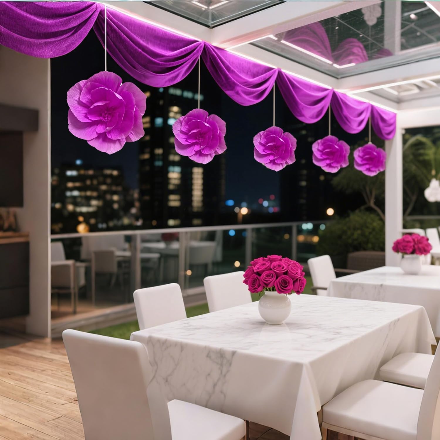- Easy to Use: Hang them from the ceiling, above a table, under the veranda, or from branches in trees. Use them to create a dreamy background for your party.