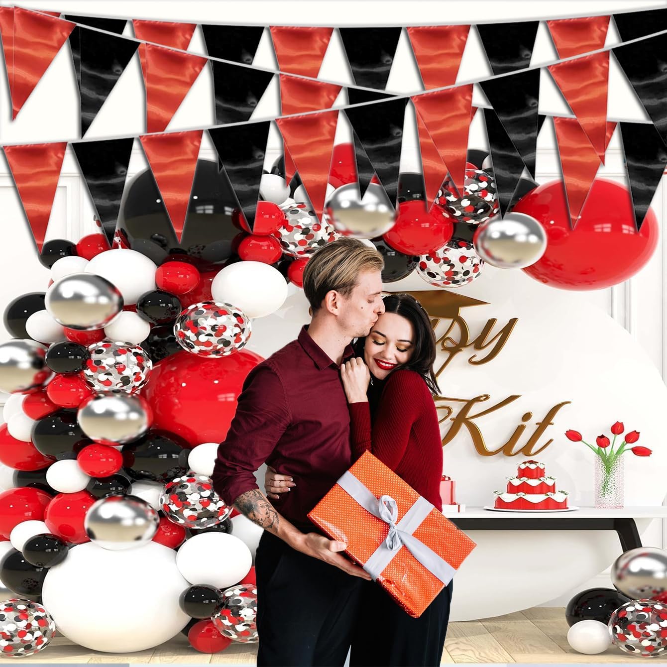 - 【Premium Material】: This Red Black banner are made of high quality material, non-fading, easy to hang, stay shiny and reusable. Unfold it and then enjoy your glittering party